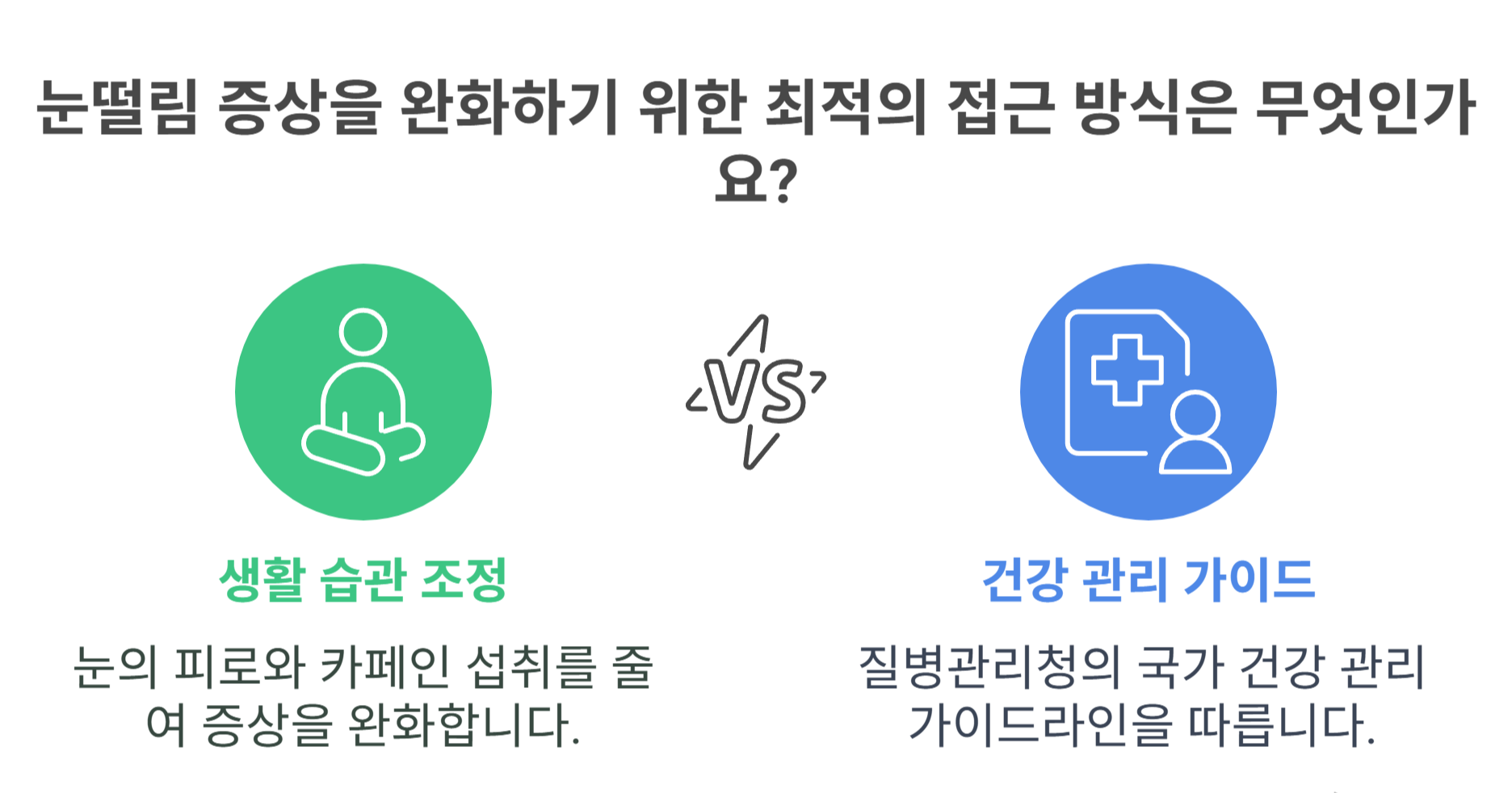 💡 TIP: 단순한 눈떨림은 1~2일 내 자연 회복되지만, 1주일 이상 지속되면 안과나 신경과 진료를 권장드려요!