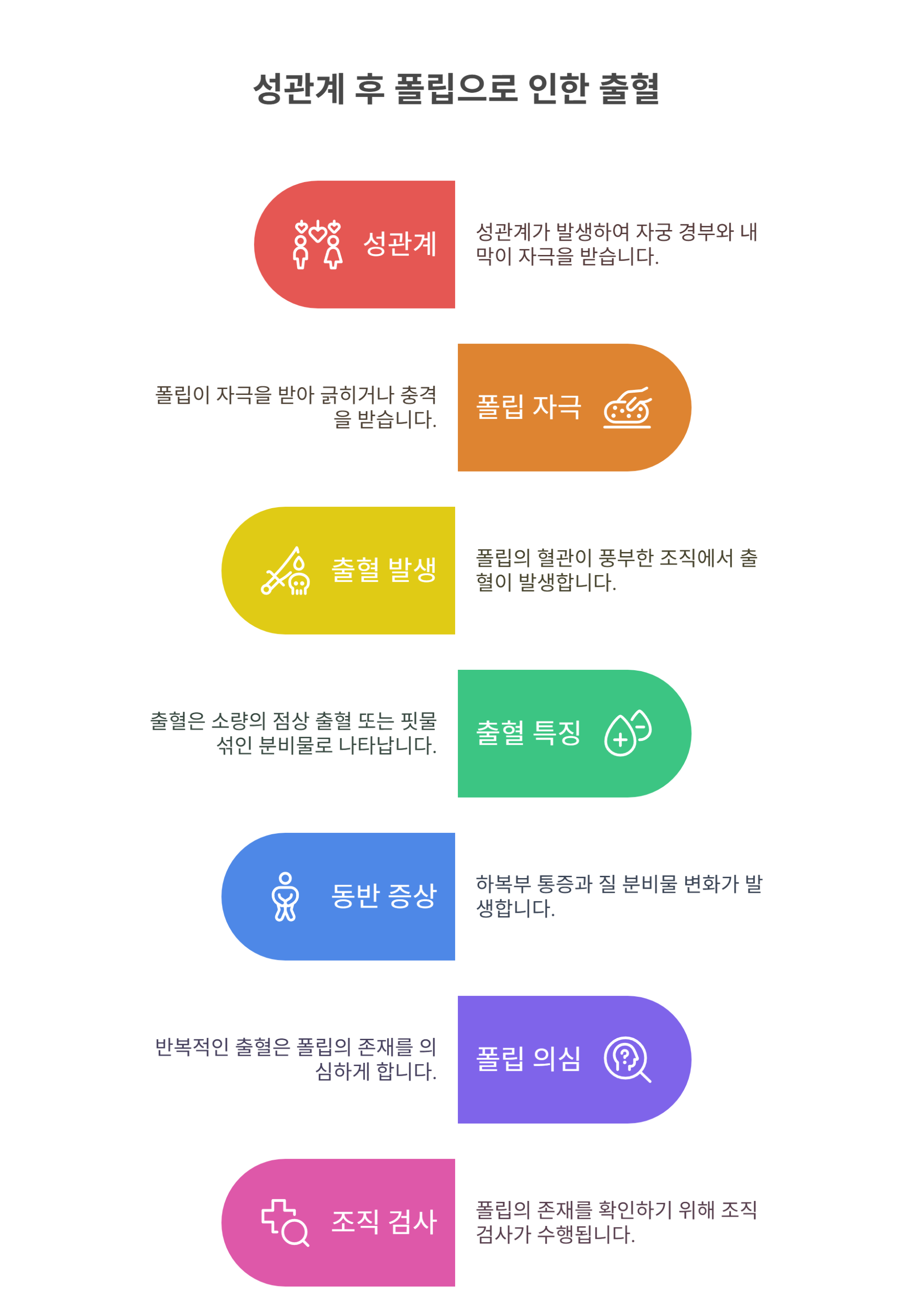 | 관계 후 출혈 | 용종이 자극받아 출혈 유발 가능 |