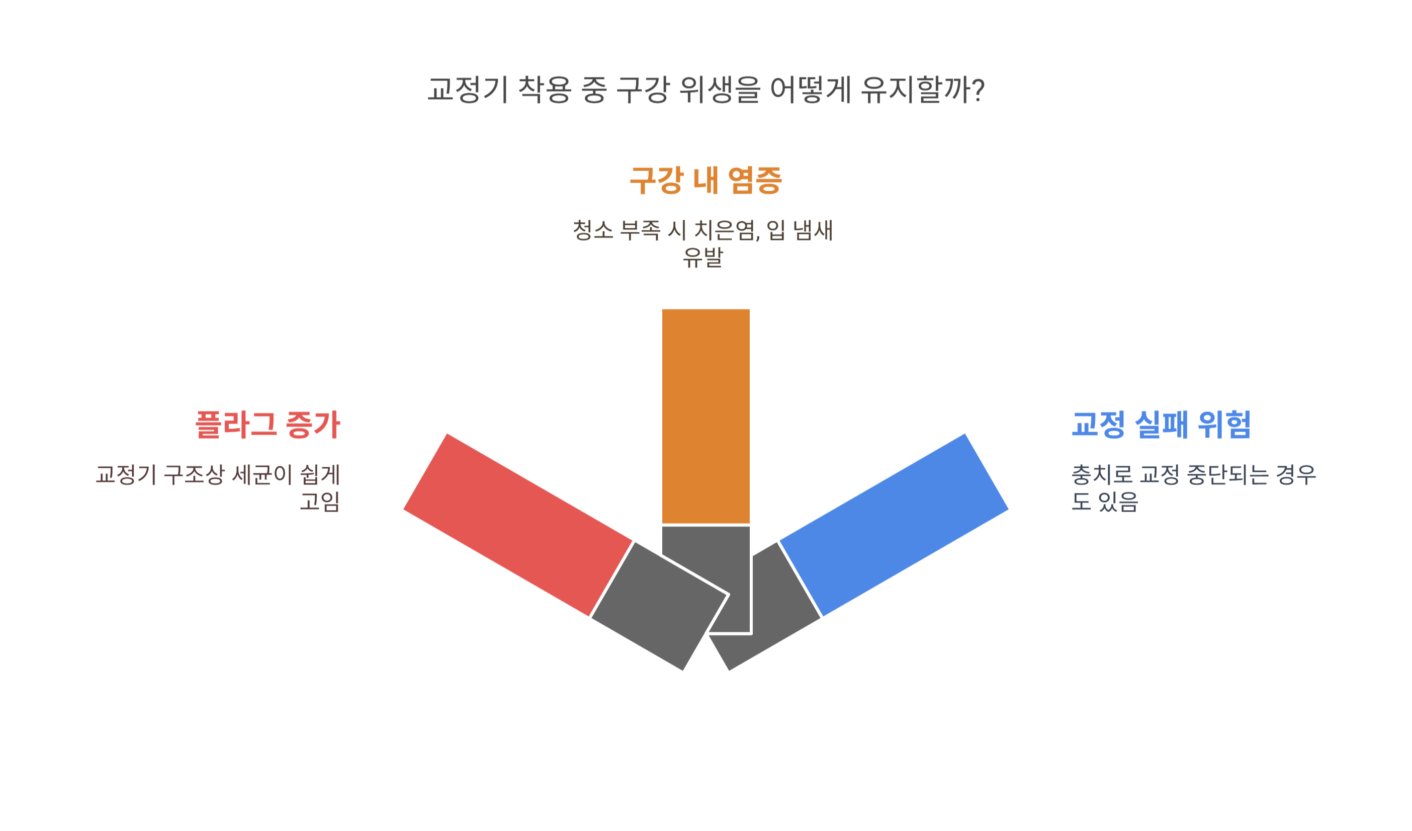 | 플라그 증가 | 교정기 구조상 세균이 쉽게 고임 |