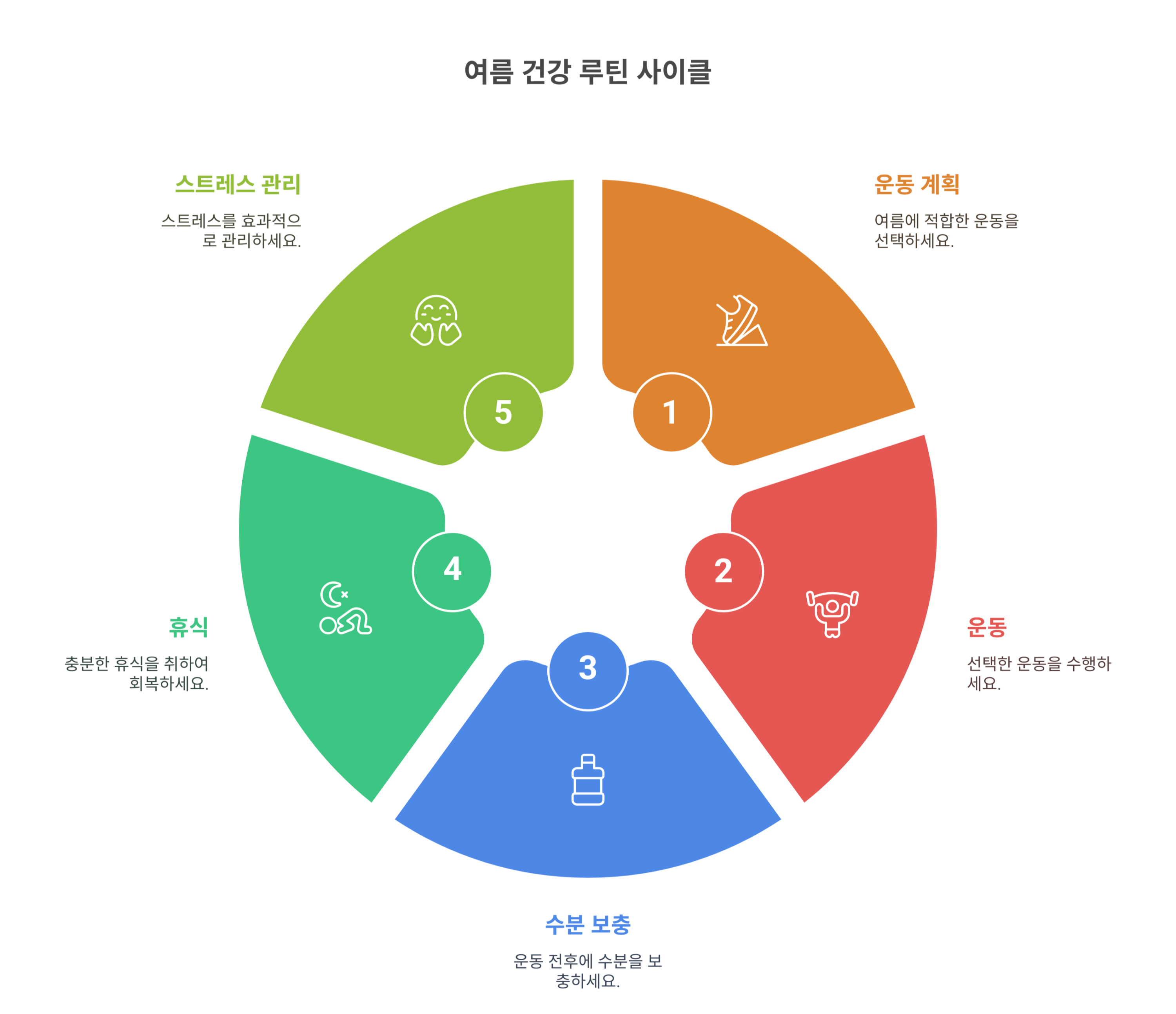 다음은, 여름철 건강을 위한 운동 및 휴식 루틴을 알려드릴게요! 🏃‍♀️🧘‍♂️