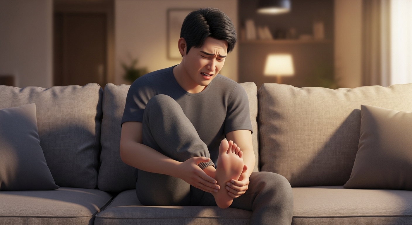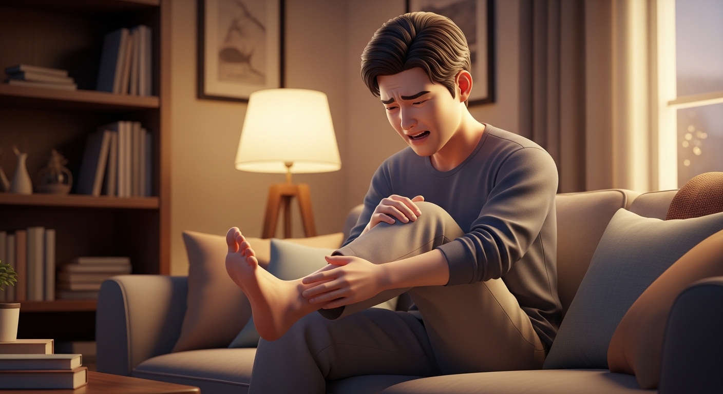 3. 열감과 발적 발가락 전체가 붉게 변하고 뜨끈한 열감이 느껴지며, 가만히 있어도 욱신거리는 통증이 지속됩니다.