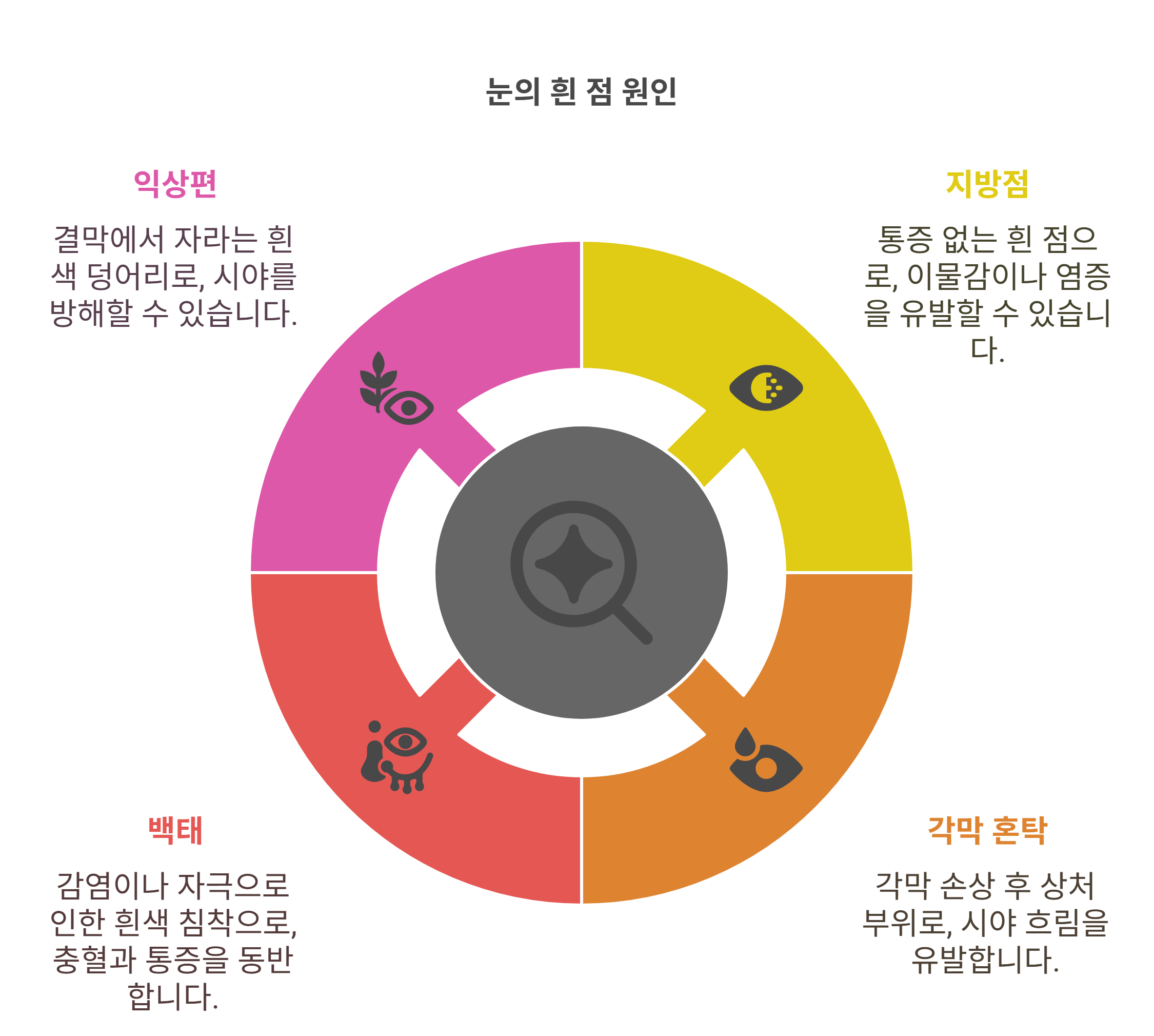 다음은, 눈에 생긴 흰 점이 왜 생기는지 그 다양한 원인부터 살펴볼게요.