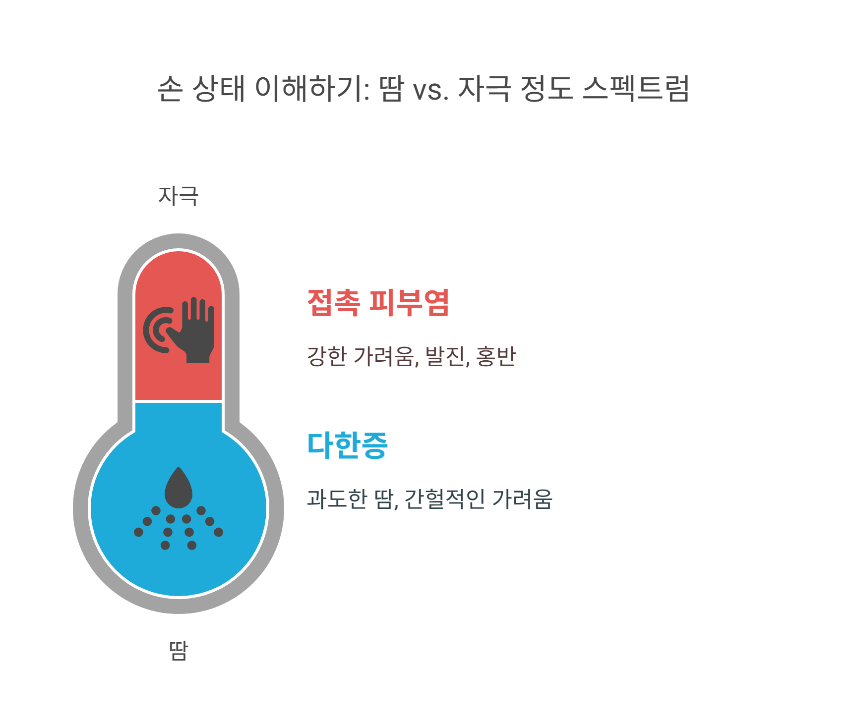 손에 땀이 많고 가려움증이 있을 때, 과연 이것이 단순 다한증인지 아니면 피부염 증상인지 헷갈릴 수 있어요.