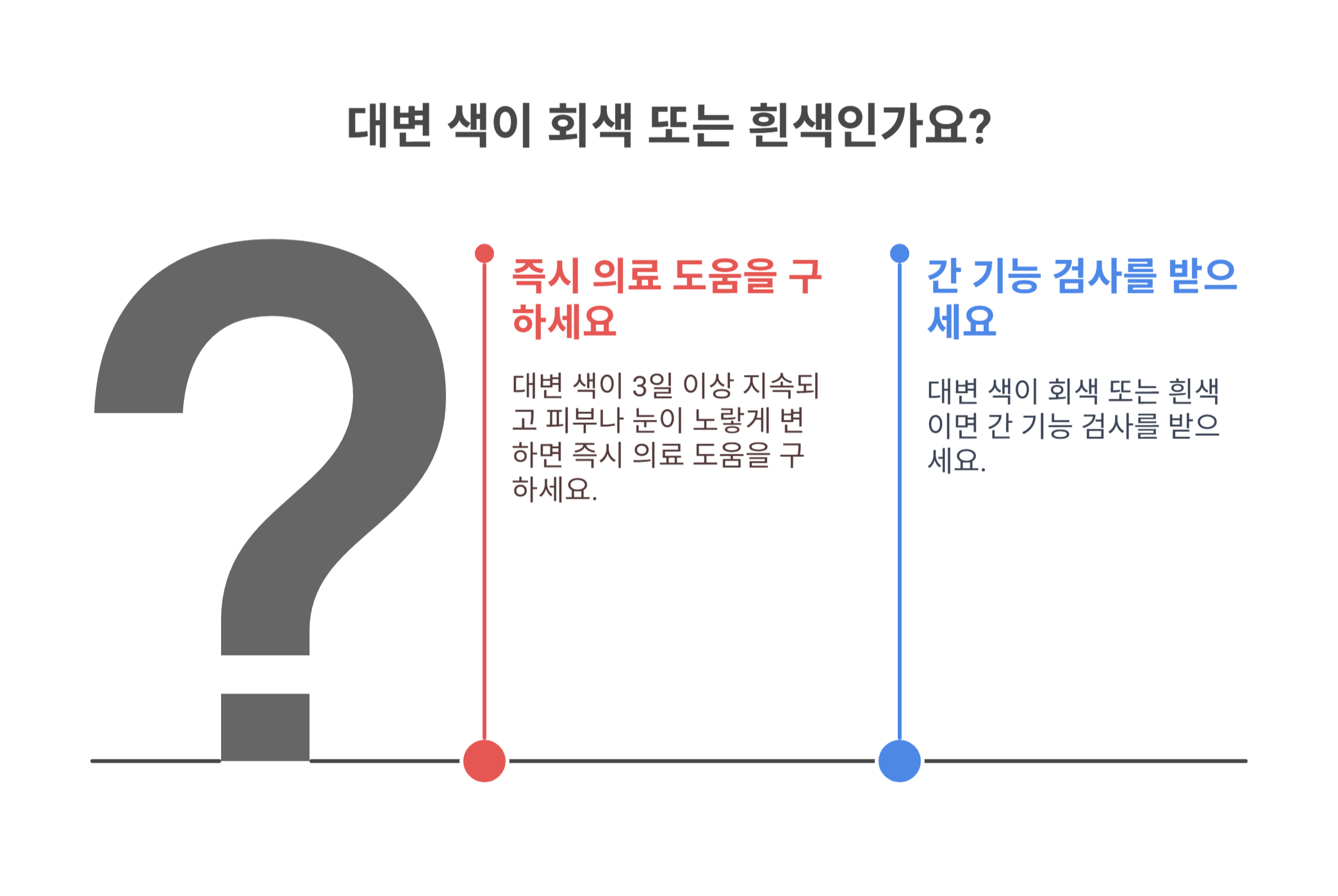 ❗ 주의: 변 색 변화가 3일 이상 지속되고, 피부나 눈의 흰자위가 노래진다면 즉시 간 기능 검사를 받아야 해요.