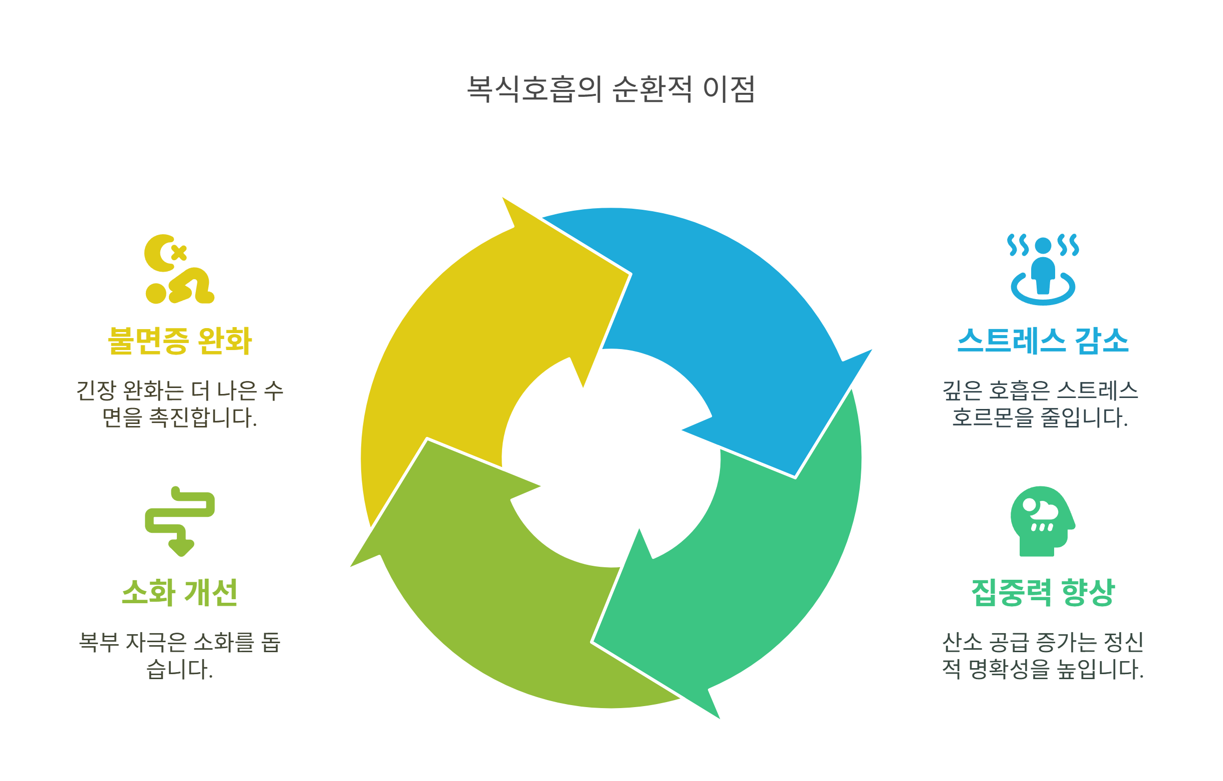 | 불면증 완화 | 수면 전 복식호흡이 긴장 해소 |