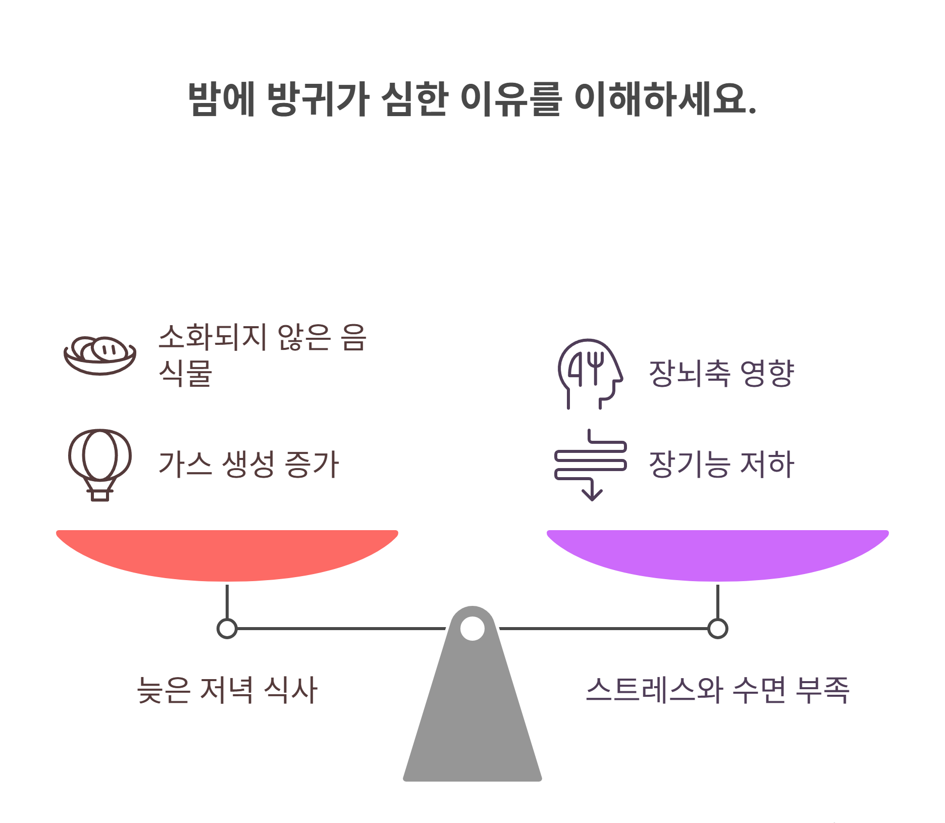 | 수면 부족 | 장기능 저하 및 가스 배출 저해 |