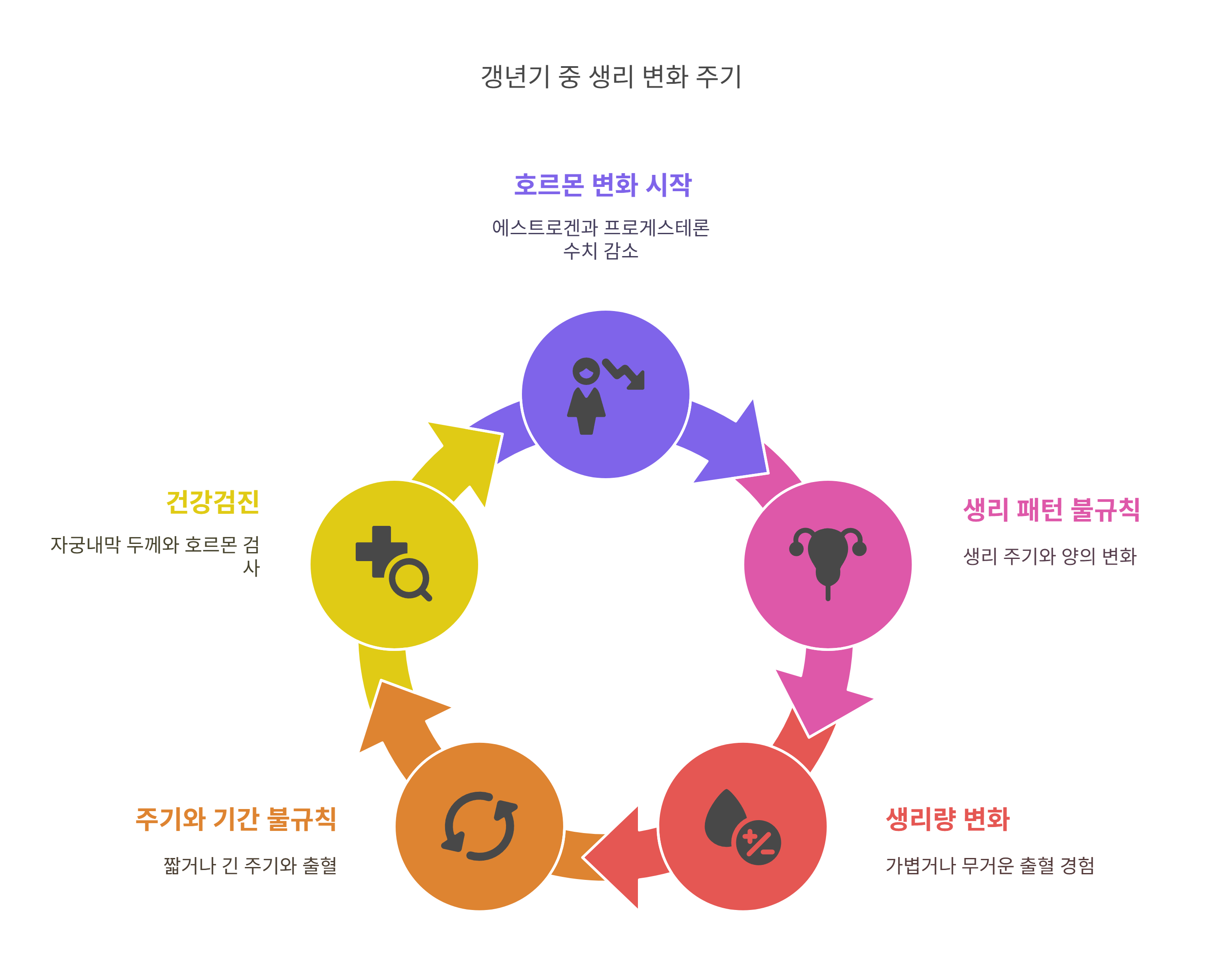 ✅ 갱년기 전후 생리기간 변화는 호르몬 이상, 자궁 질환일 수 있음
