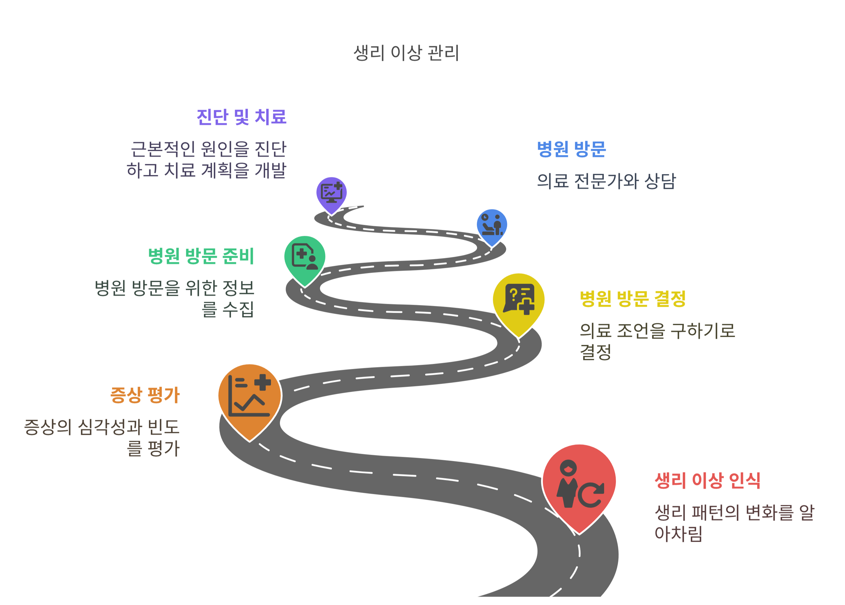 다음은, 생리 이상이 생겼을 때 병원에 꼭 가야 할 기준을 정리해드릴게요! 🚨