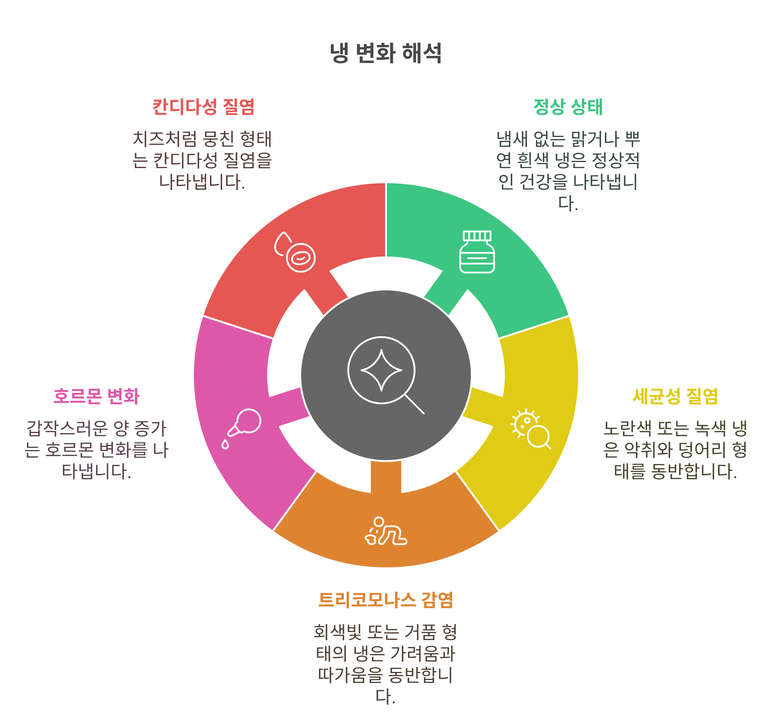 ✅ 냉의 색, 냄새, 양에 따라 상태 체크 가능