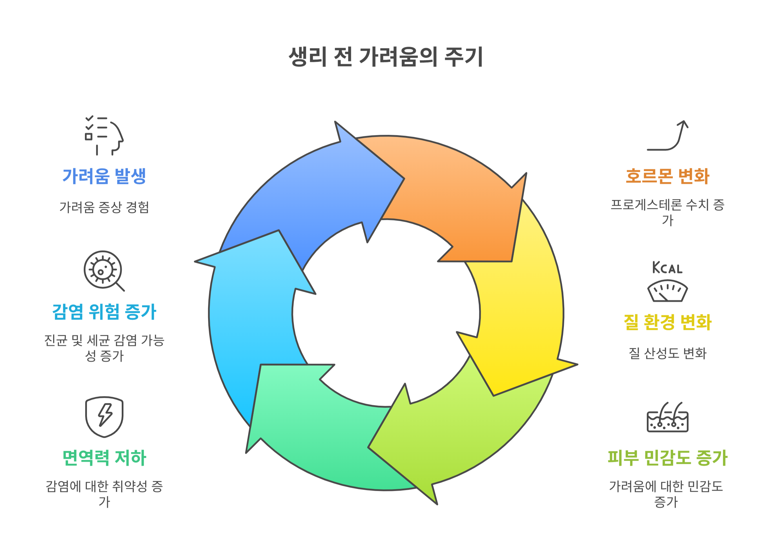 생리 전 질 부위 가려움은 단순한 위생 문제라기보다, 여성 호르몬 변화와 면역 저하가 복합적으로 작용한 결과일 수 있어요.