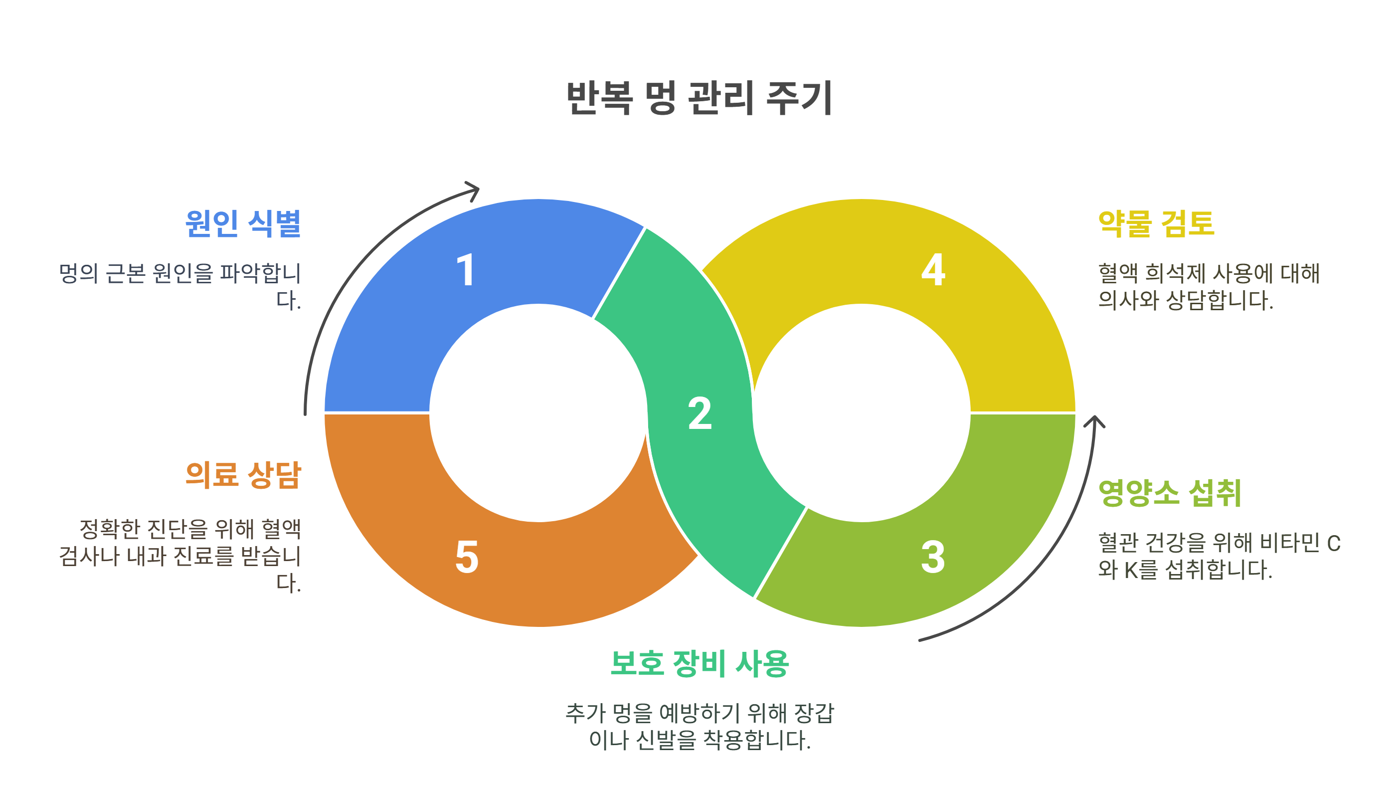 📌 참고: 반복되는 멍은 단순 문제가 아닐 수 있어요. 혈액검사나 내과 진료를 통해 정확한 원인을 확인하세요.
