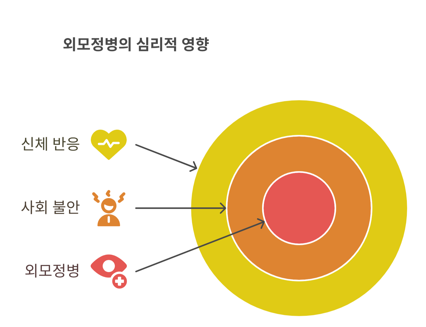 외모정병은 단순한 외모 콤플렉스가 아닌, 사회적 관계와 신체 반응에 영향을 미치는 심리적 문제입니다.