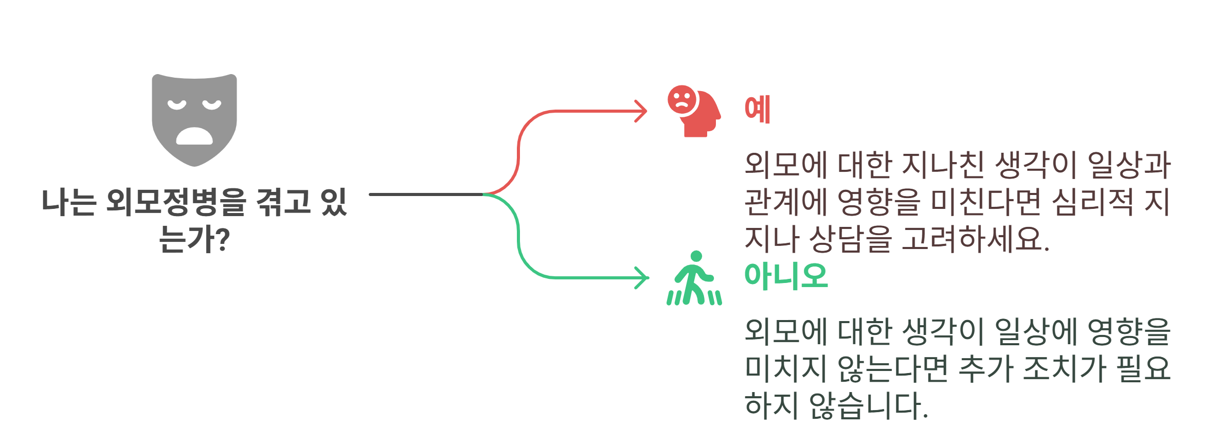 외모에 대한 지나친 생각이 일상과 관계에 영향을 준다면, 조기 대처가 필요해요.