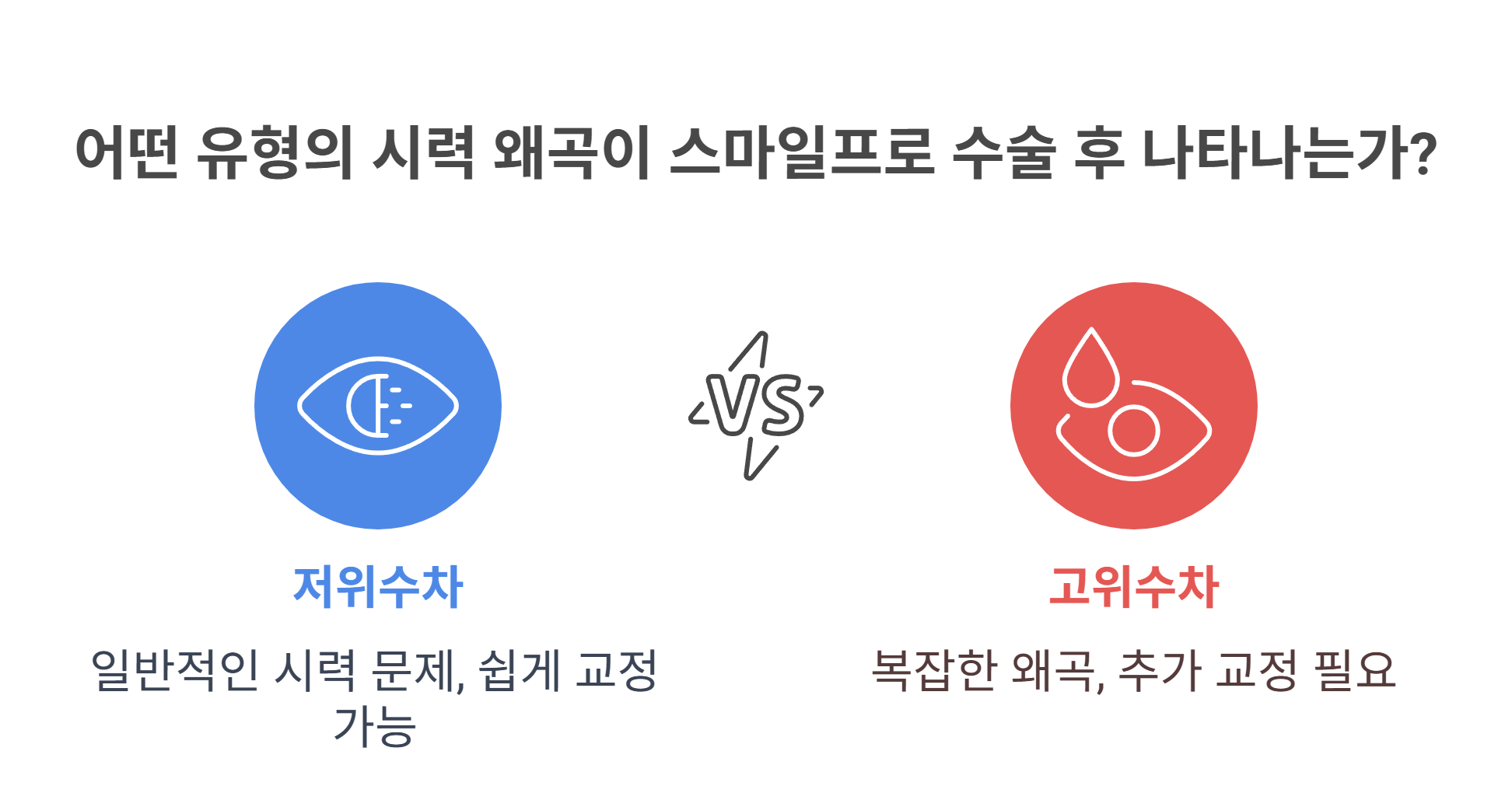 스마일프로 수술 후에도 빛번짐, 야간 시력 저하, 초점 불안정이 오래 지속된다면 ‘고위수차(Higher Order Aberration, HOA)’를 의심해볼 수 있어요.