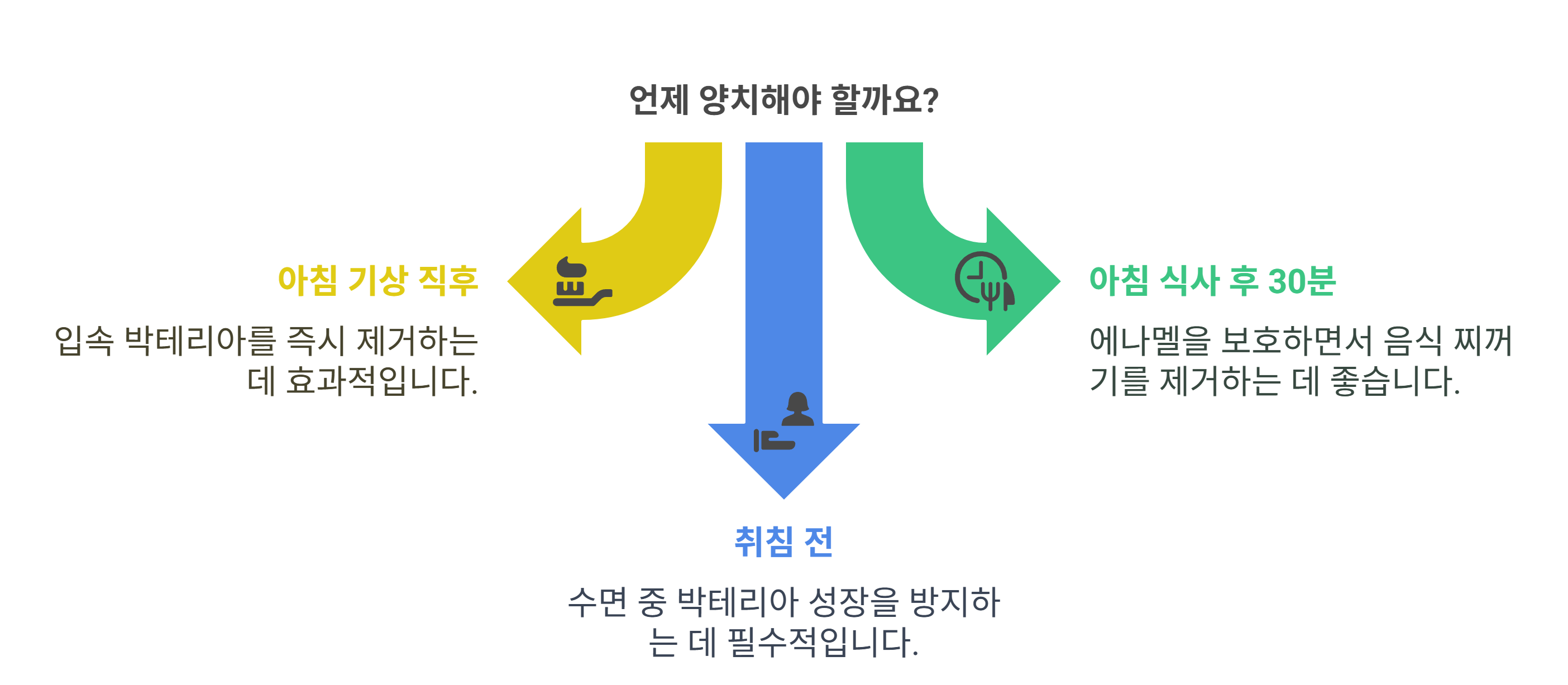 ✅ 아침 양치는 기상 직후 + 식후 두 번이 이상적이에요