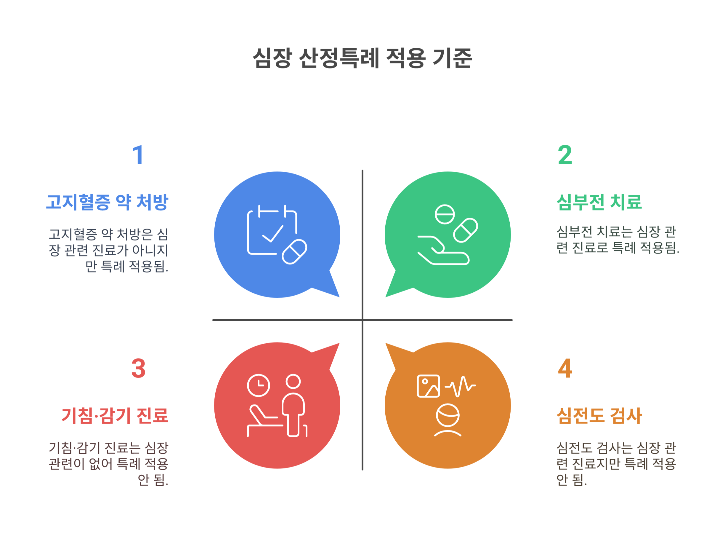 심장 관련 진료를 직접적으로 다루는 과이기 때문에, 대부분의 검사·치료·약 처방이 특례에 포함됩니다.