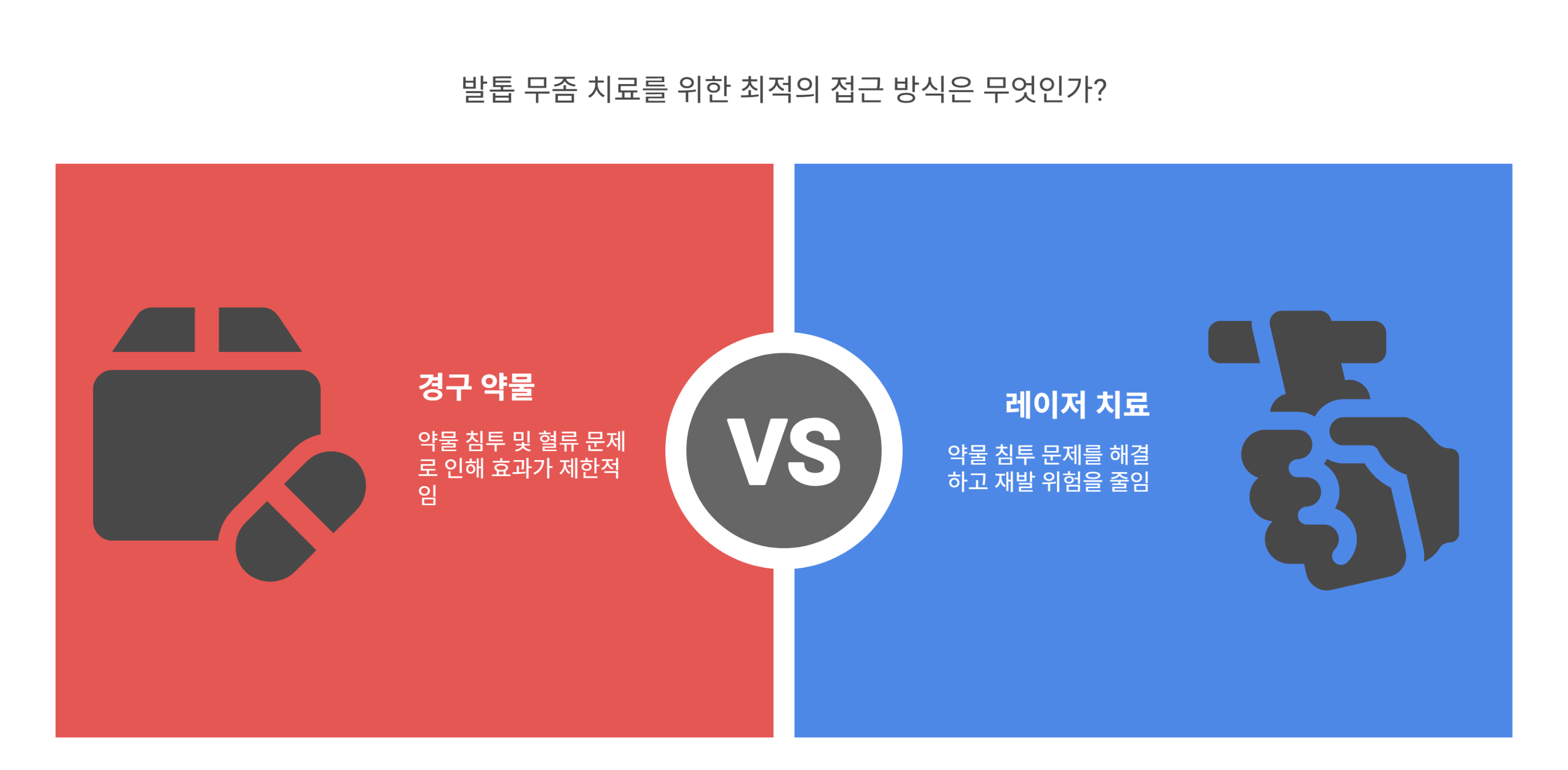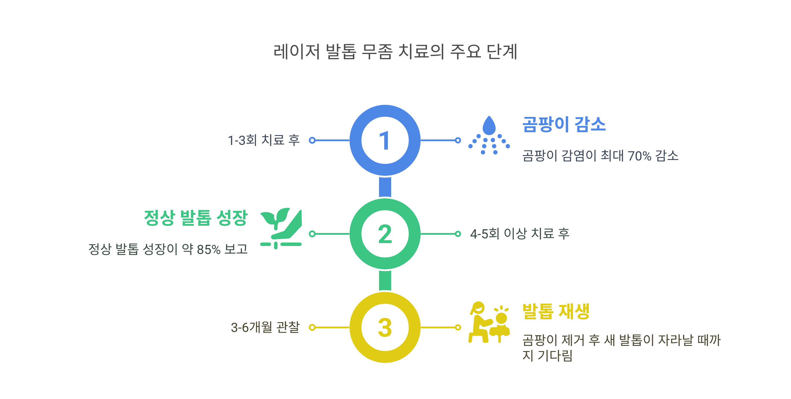 레이저 치료는 기존 약물치료에 비해 더 빠른 효과를 기대하기보다는, 약물과 병행 시 시너지 효과를 내는 방식이에요.