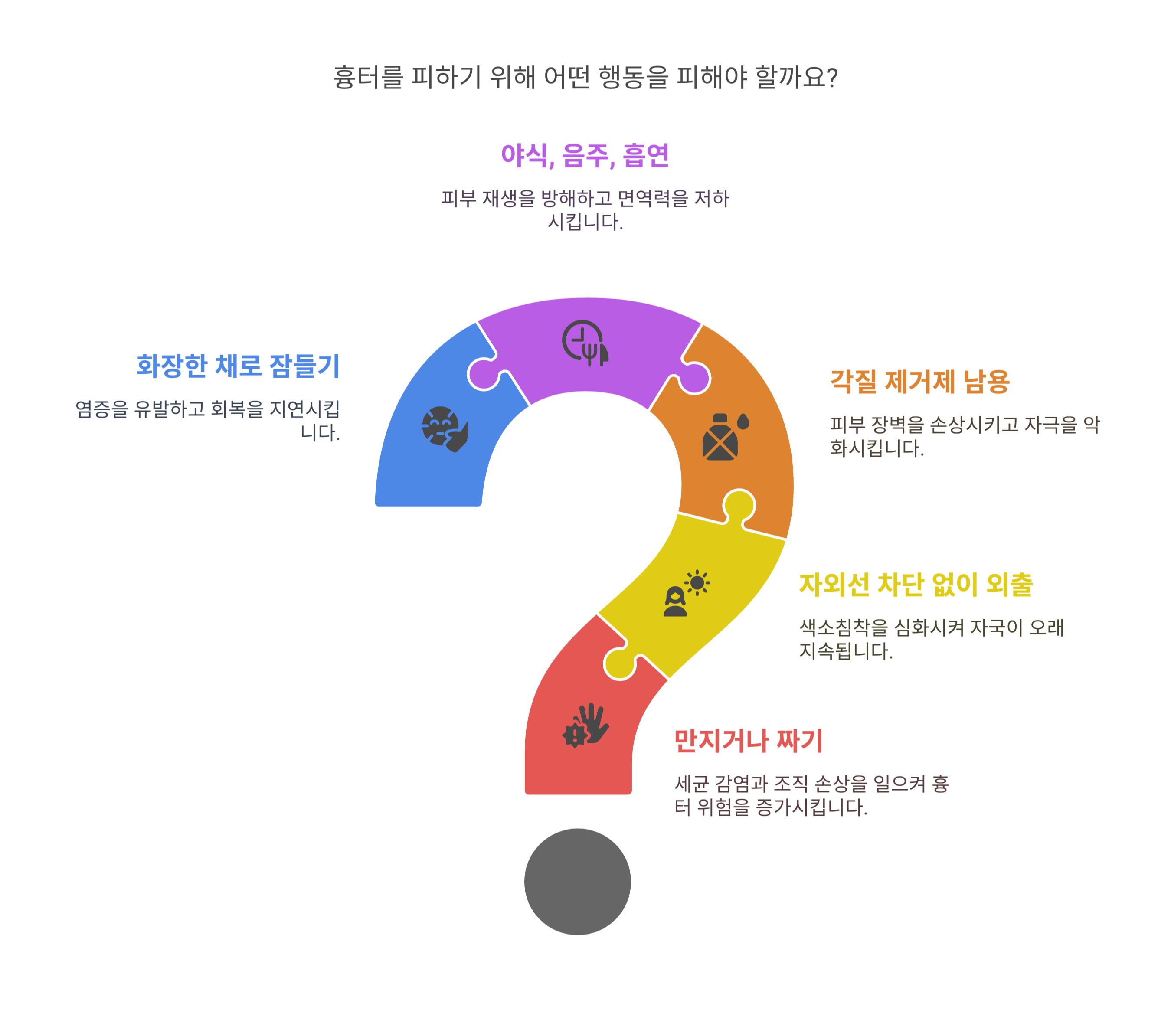 - 자꾸 만지거나 짜는 습관 – 세균 감염 및 피부조직 손상 → 흉터화 위험