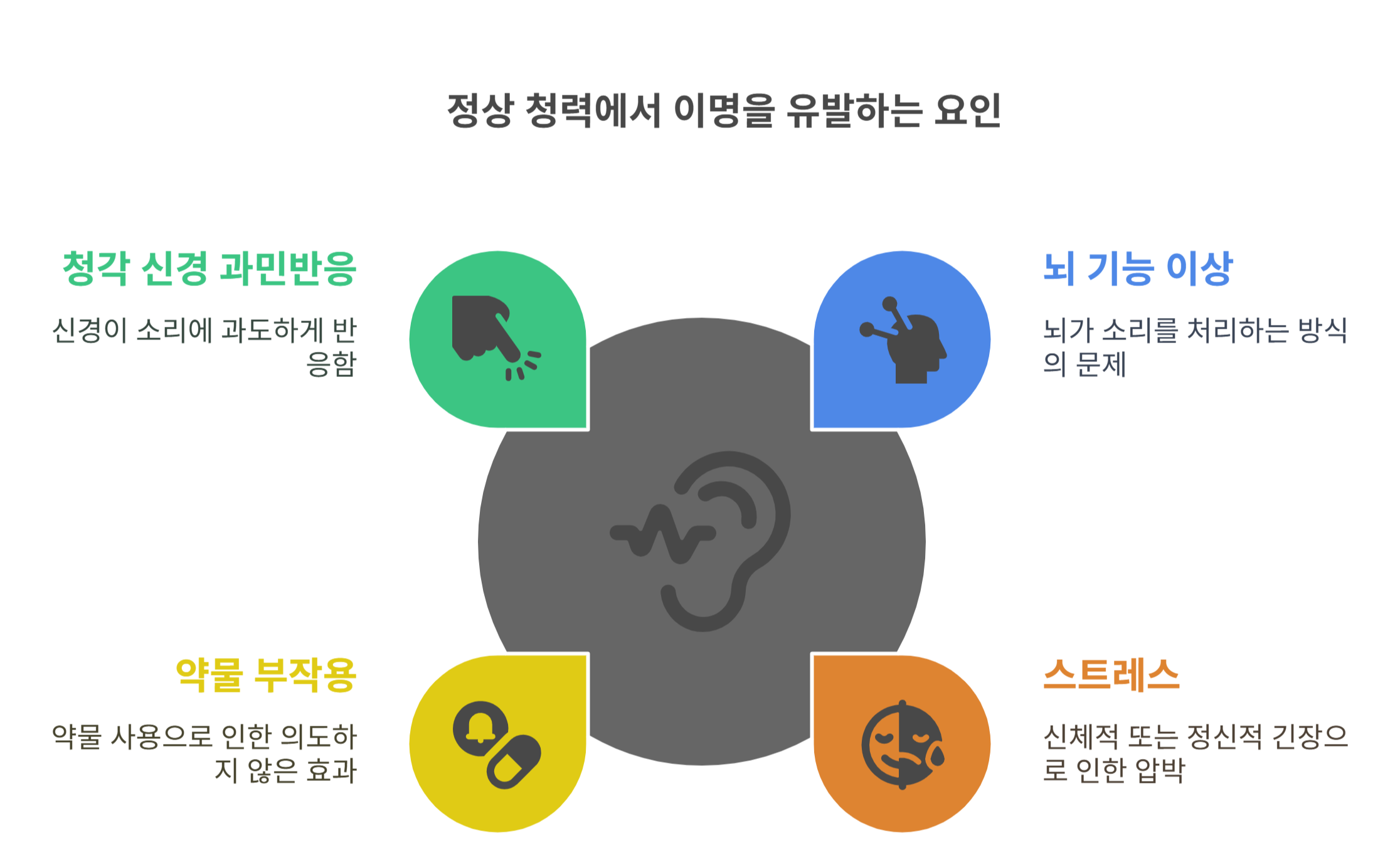 💡 TIP: 이명이 있다고 해서 반드시 귀 자체에 문제가 있는 건 아니에요.