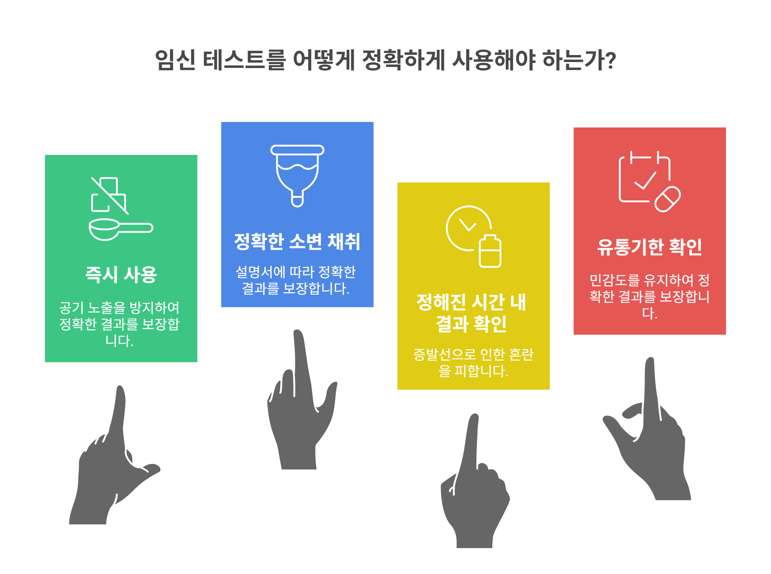 - 정확한 소변 채취컵에 담아 떨어뜨리거나, 흐르는 소변에 일정 시간 노출시키는 방식이 있어요. 반드시 설명서대로!