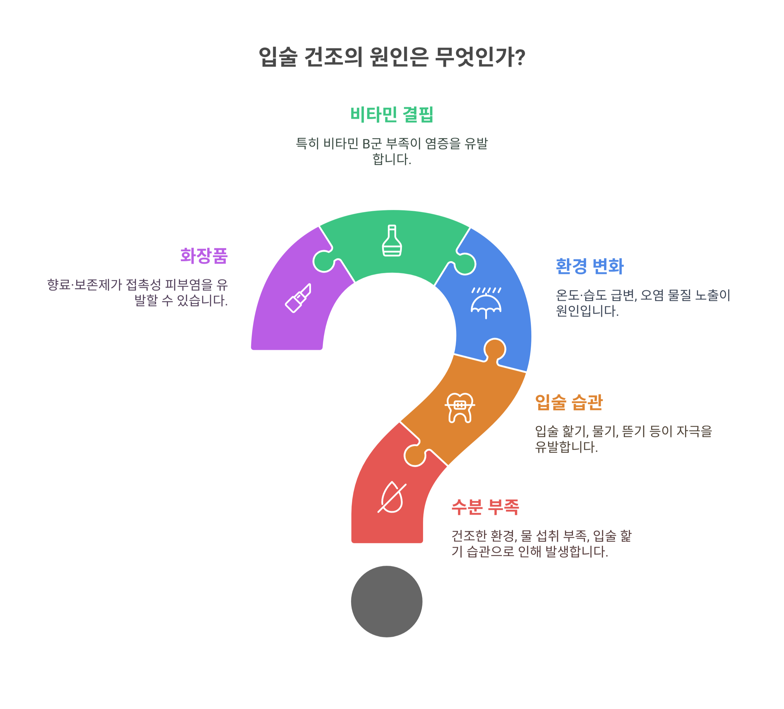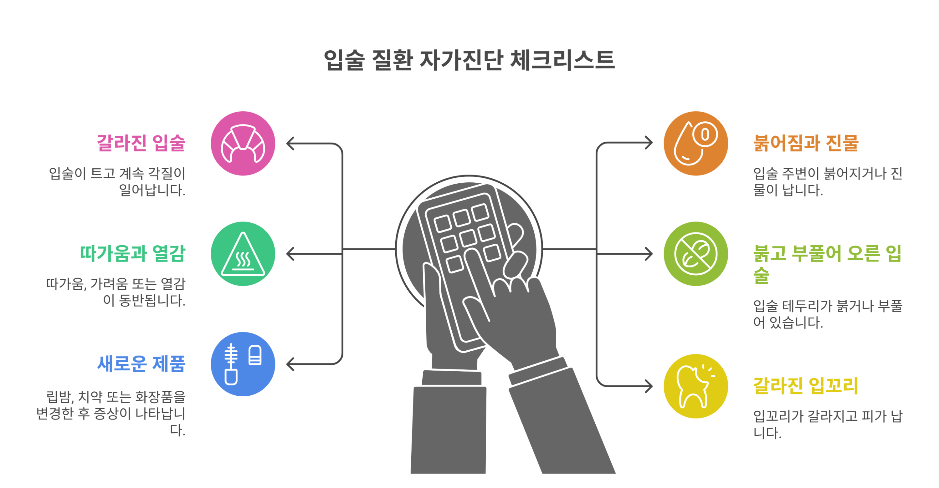 | 아토피성 입술염 | 건조하고 반복적인 갈라짐, 염증과 가려움 동반 |