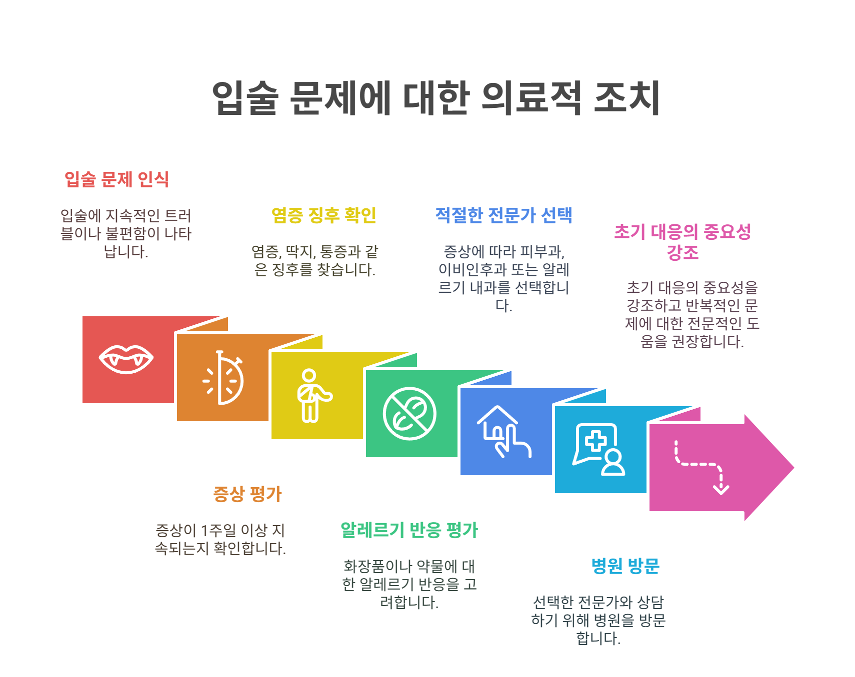 입술 트러블이 일주일 이상 지속된다면, 감염이나 알레르기성 염증일 수 있어요. 이럴 땐 전문의 상담이 필요합니다!