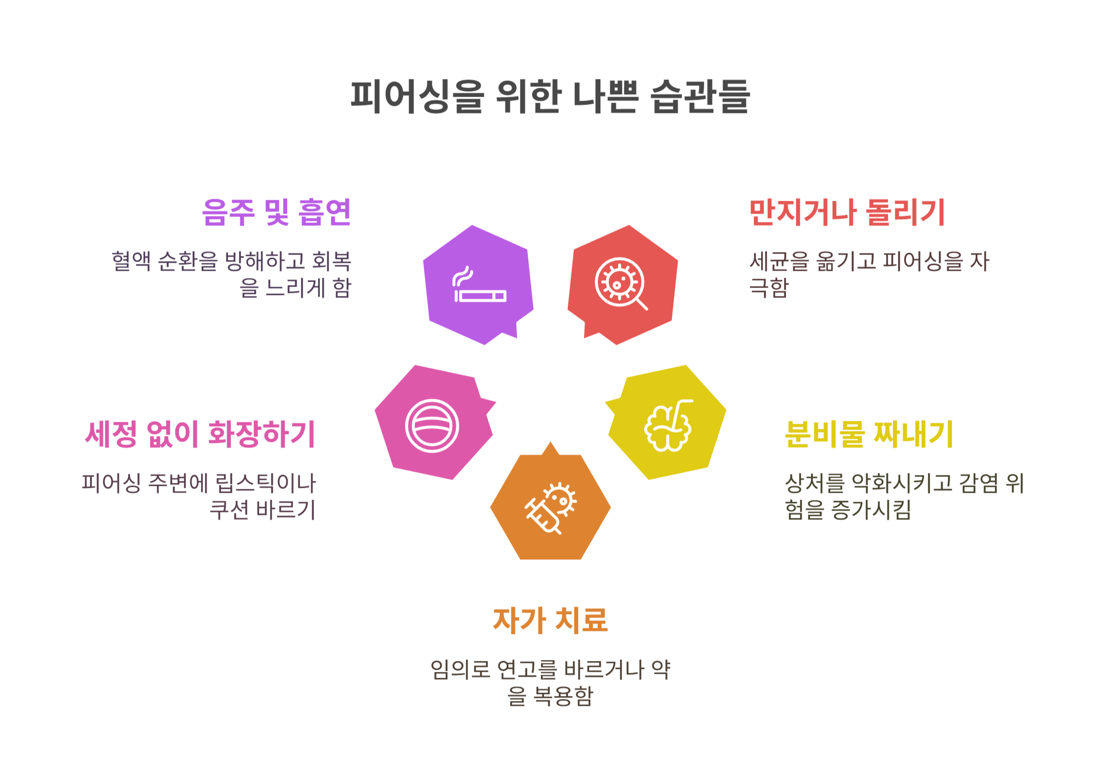 | 화장품 사용 | 피어싱 주변 2~3cm는 바르지 않기 |