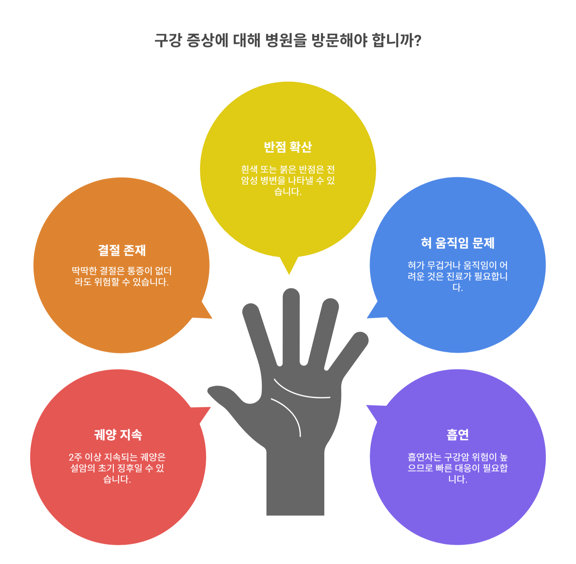 💡 TIP: 가까운 치과 구강외과, 대학병원 이비인후과를 통해 조직검사 및 진단을 받으세요. 조기 진단이 생명을 지켜줍니다!