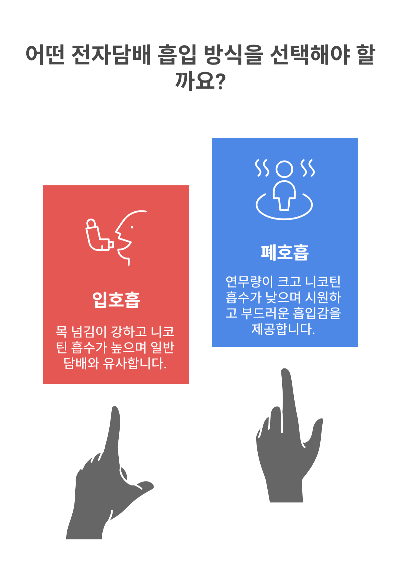 ✔ 기기와 액상 모두 호흡 방식에 맞게 선택해야 안전해요!