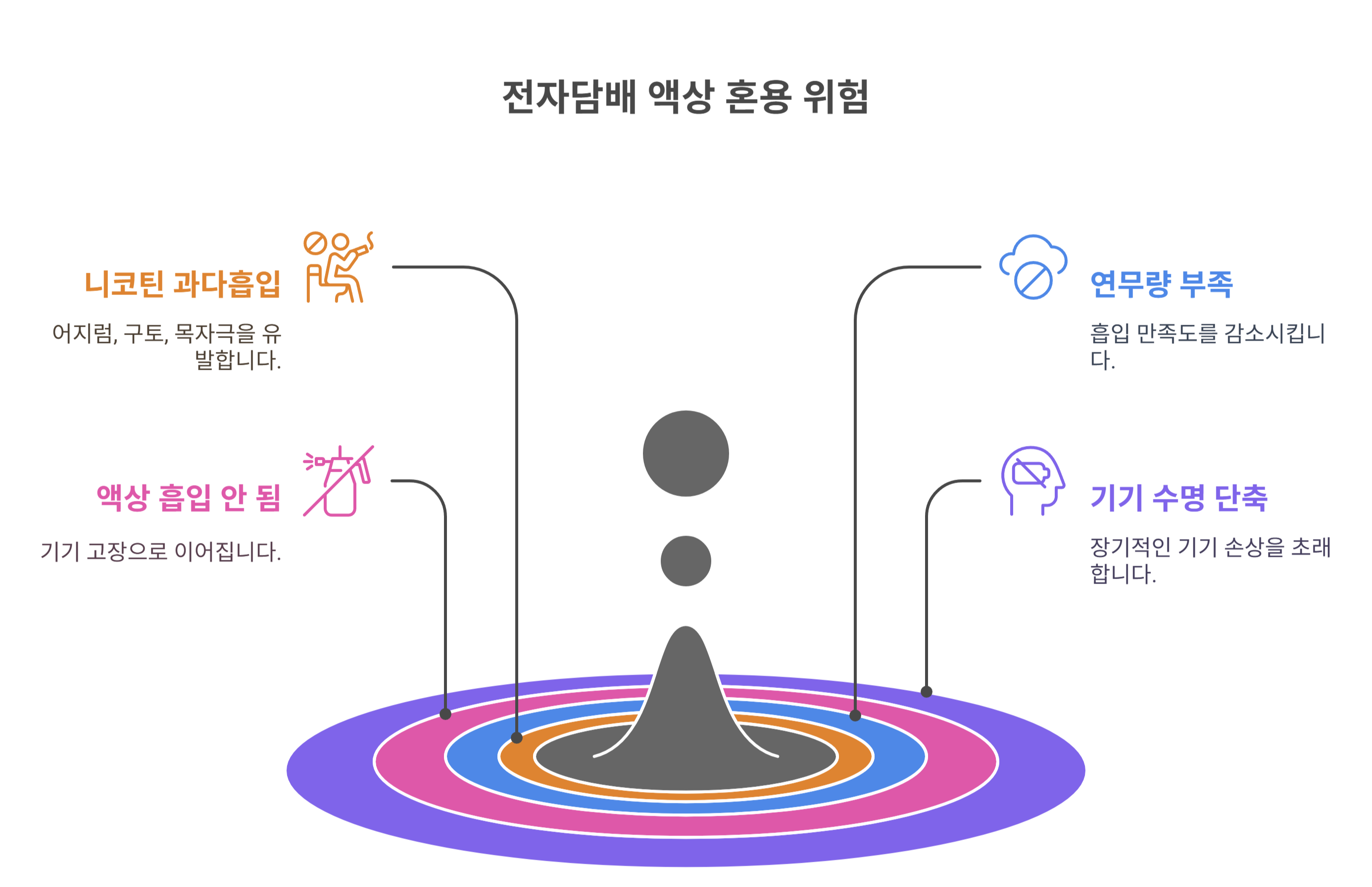 ✅ 혼용 사용은 니코틴 과다흡수, 누수, 코일 손상 등의 위험을 유발한다
