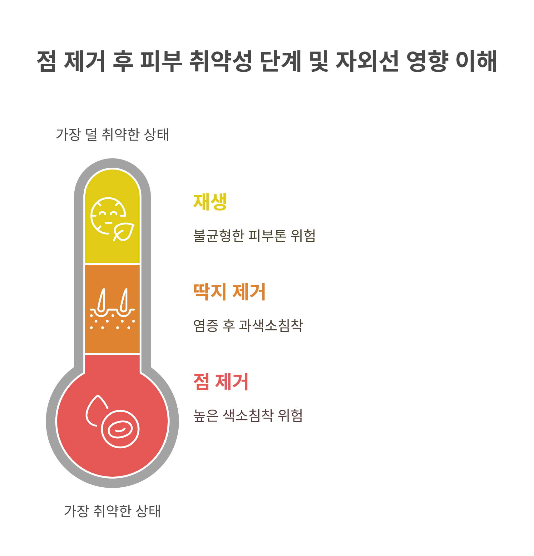 | 점 제거 직후 | 색소침착 위험 증가 |