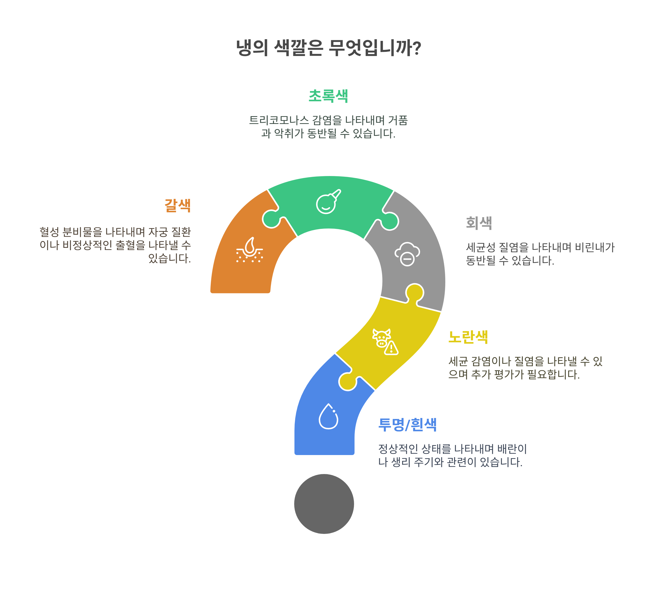 다음은, 냉의 색깔로 건강 상태를 어떻게 구별할 수 있는지 자세히 설명드릴게요! 🌈