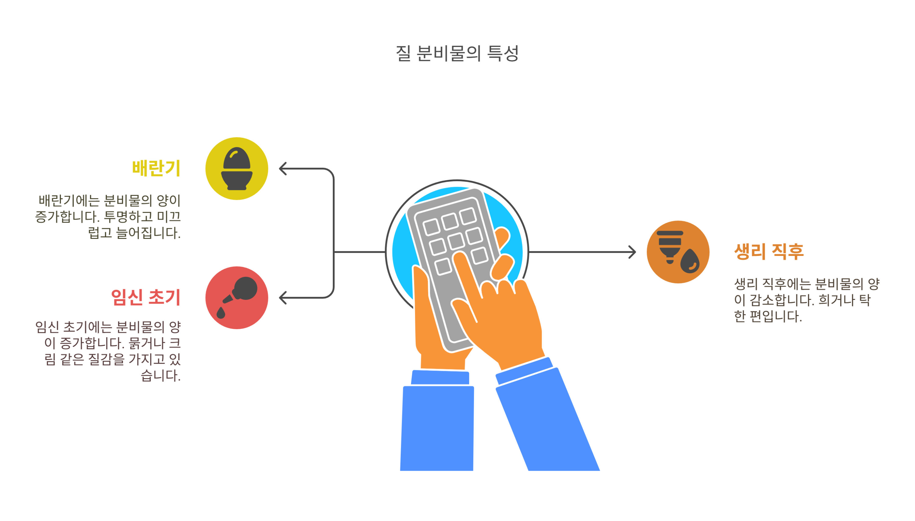 | 투명/흰색 | 정상 | 배란기, 생리 주기 영향 |