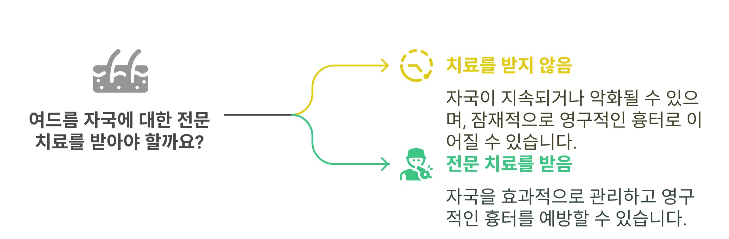 | 패인 흉터 | 자연 회복 어려움 | 레이저 등 전문 치료 필요 |