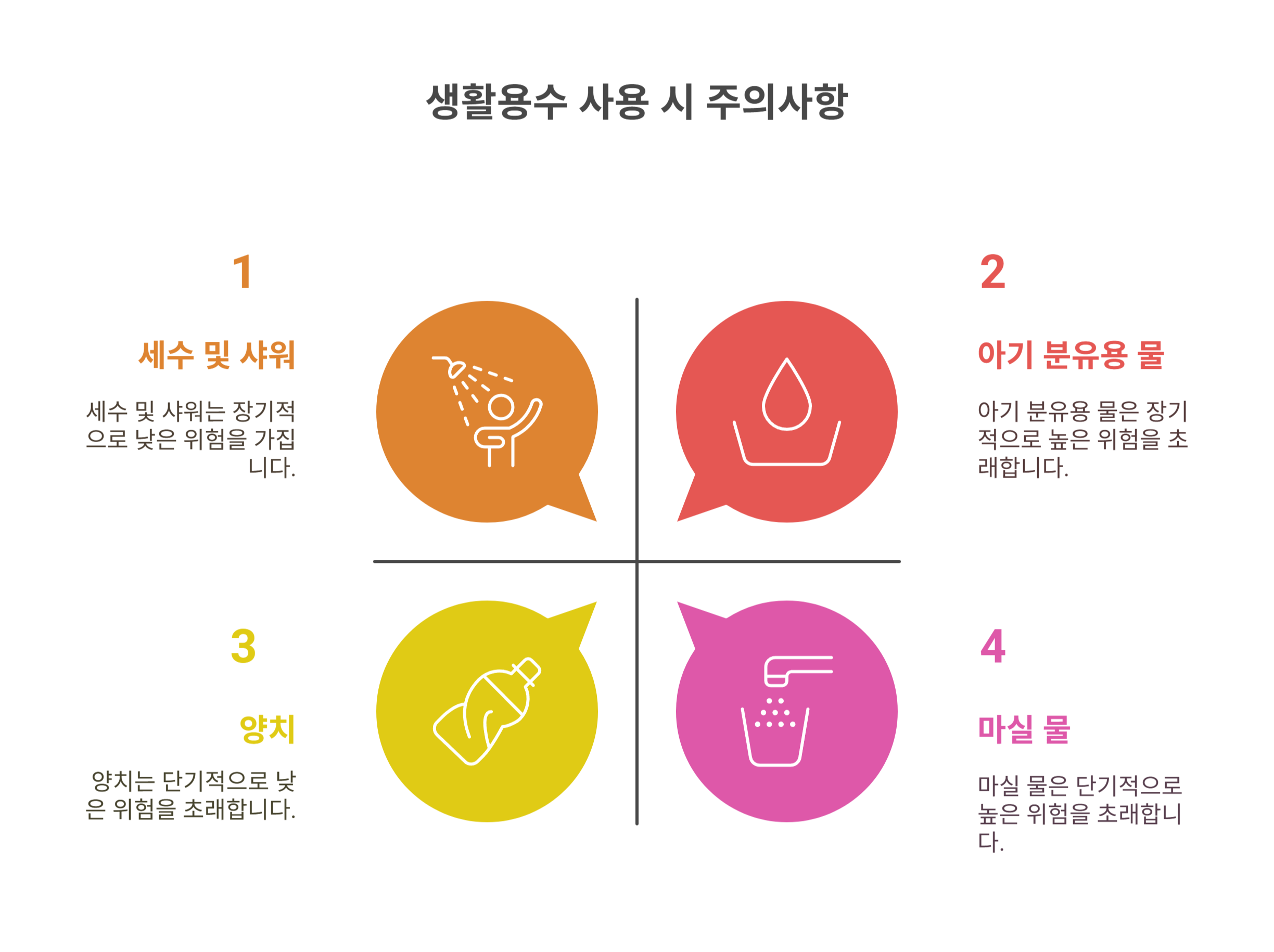 | 임산부 | 태아에게 영향 가능성 | 정수된 물 또는 생수 사용 권장 |