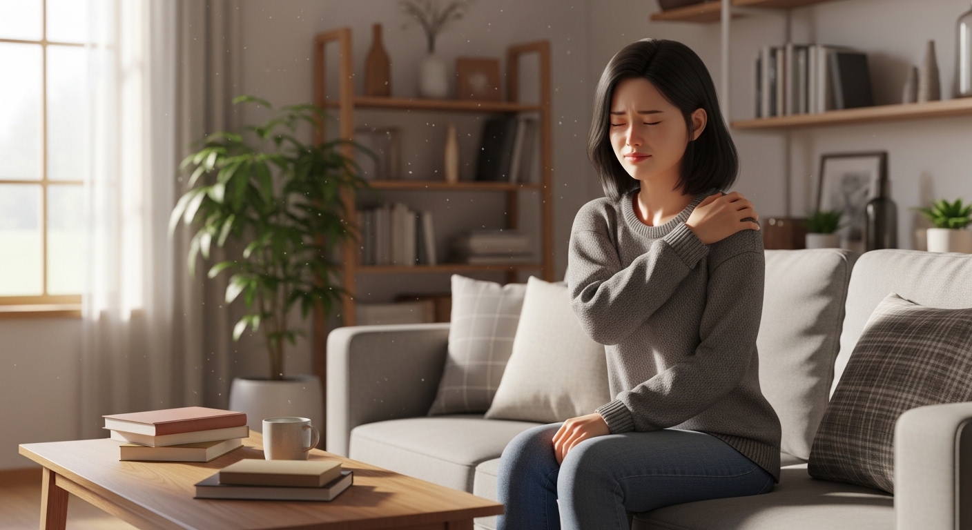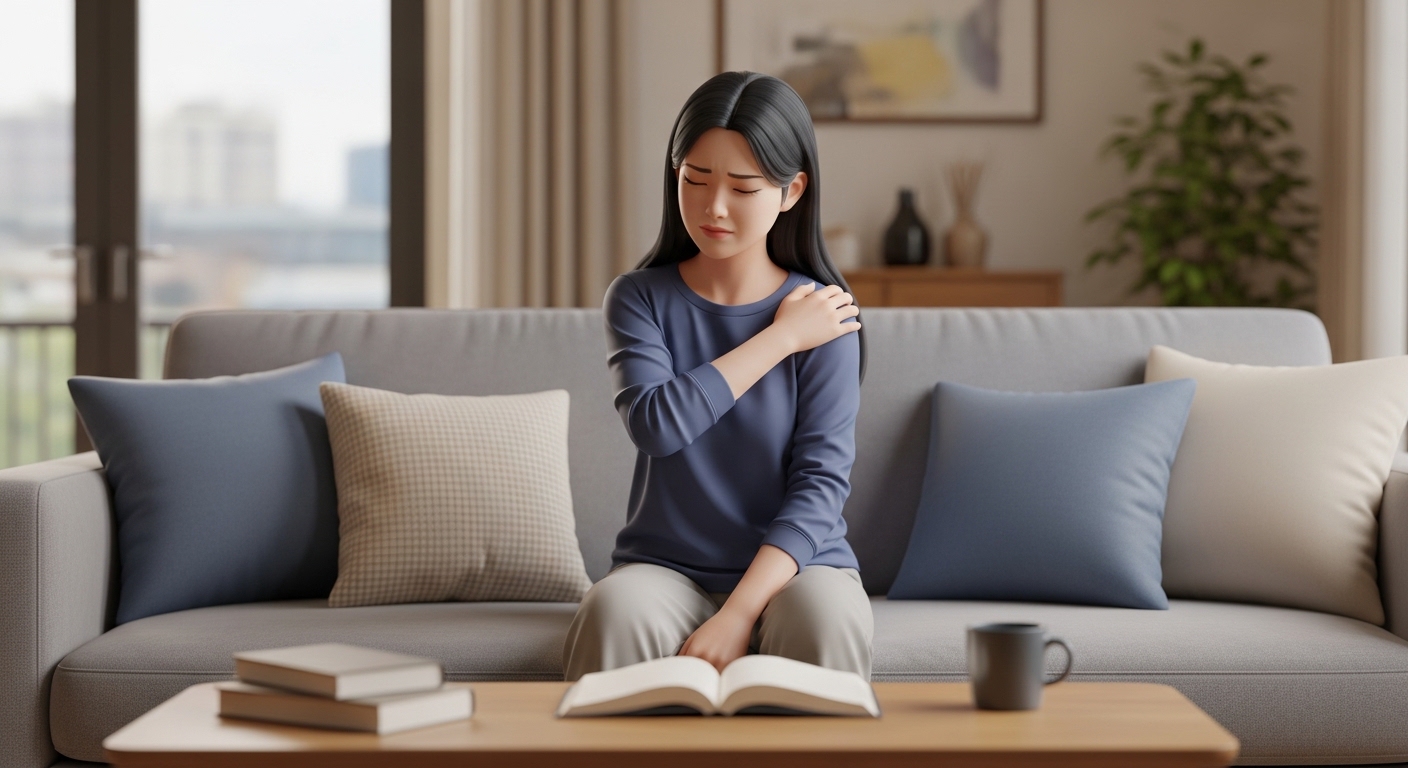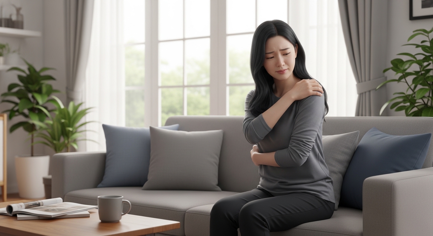 ✅ 수면 자세 신경 쓰기: 아픈 쪽 어깨가 바닥에 눌리지 않도록 정자세로 눕거나, 아프지 않은 쪽으로 돌아누우세요. 아픈 팔 아래에 얇은 쿠션을 받치면 훨씬 편안합니다.