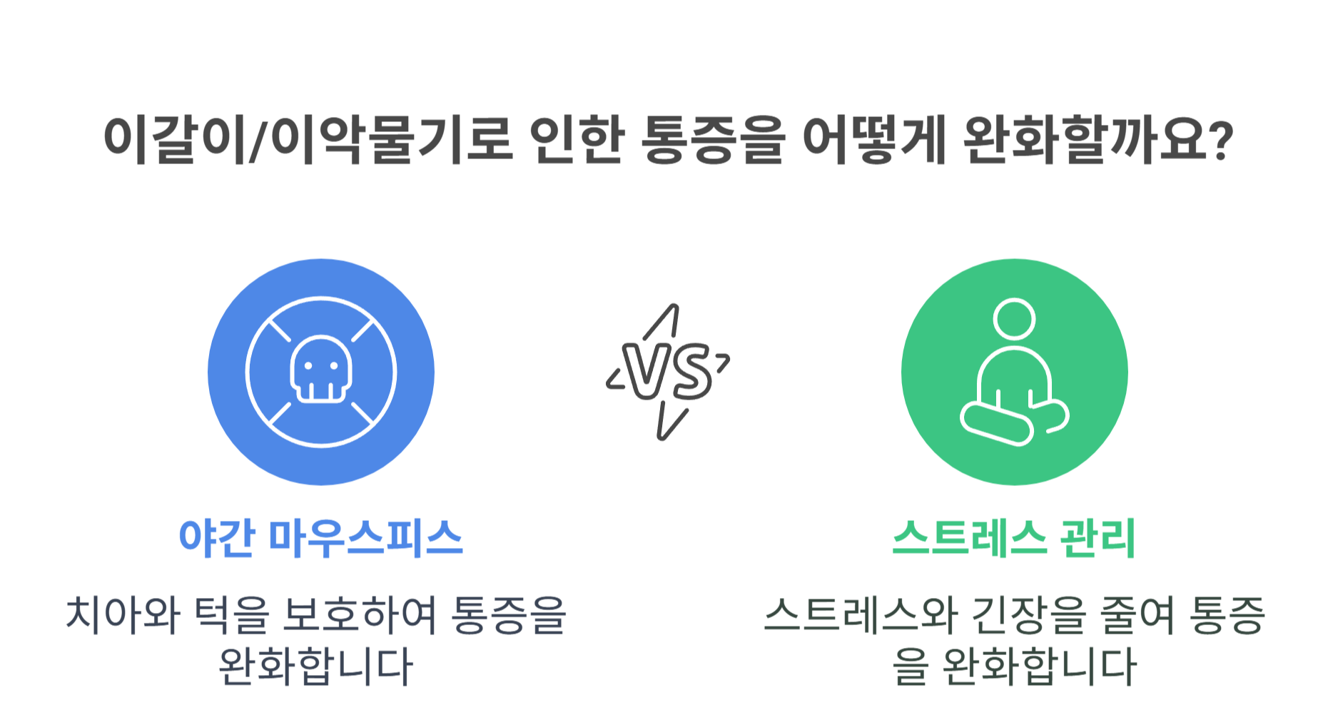 💡 팁: 야간 마우스피스는 치과에서 개인 맞춤 제작이 가능하며, 통증 예방에 탁월한 효과가 있어요!