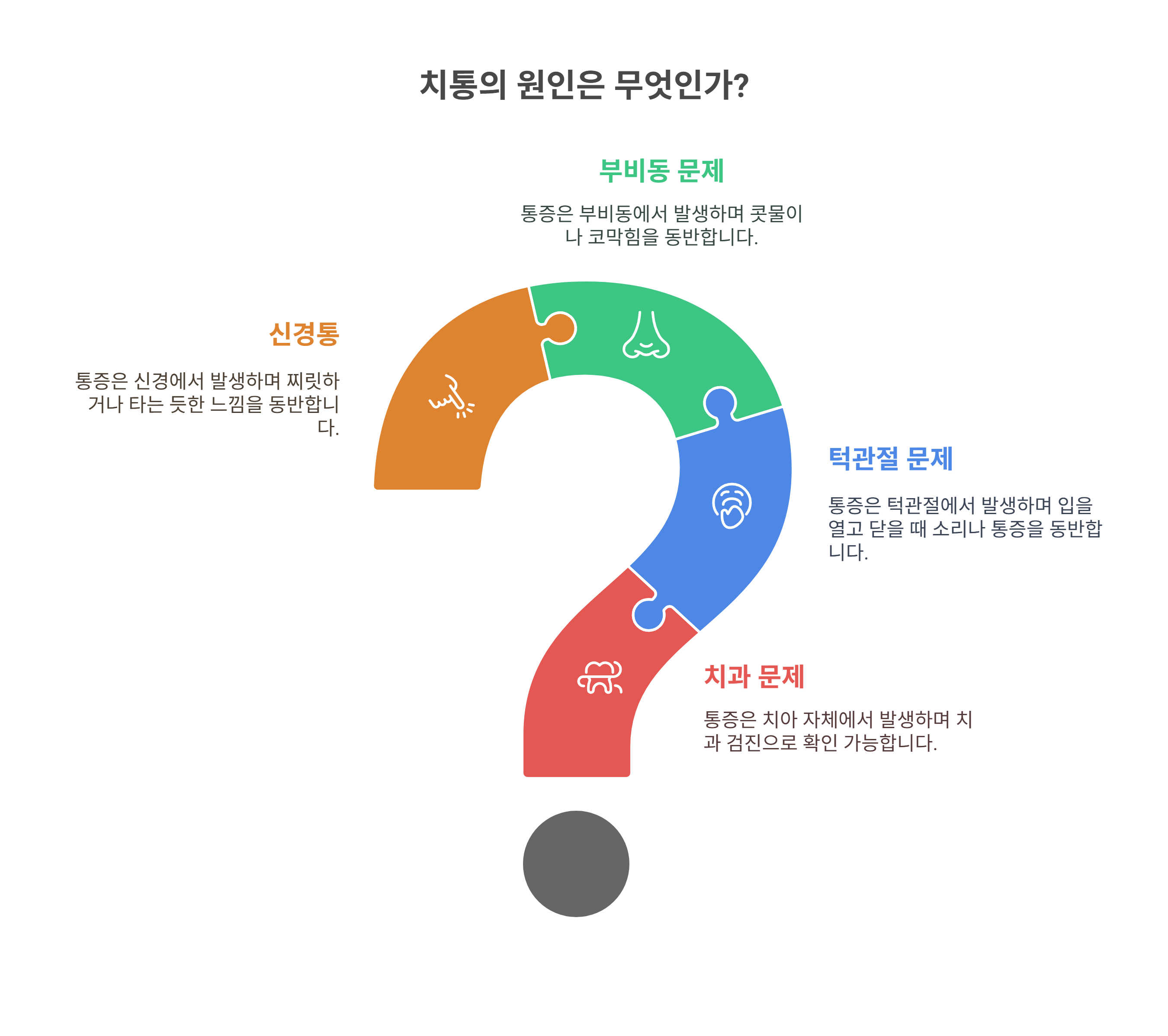 ✅ 치과에서 이상 없다면 턱관절, 부비동, 신경 문제일 가능성이 있어요.