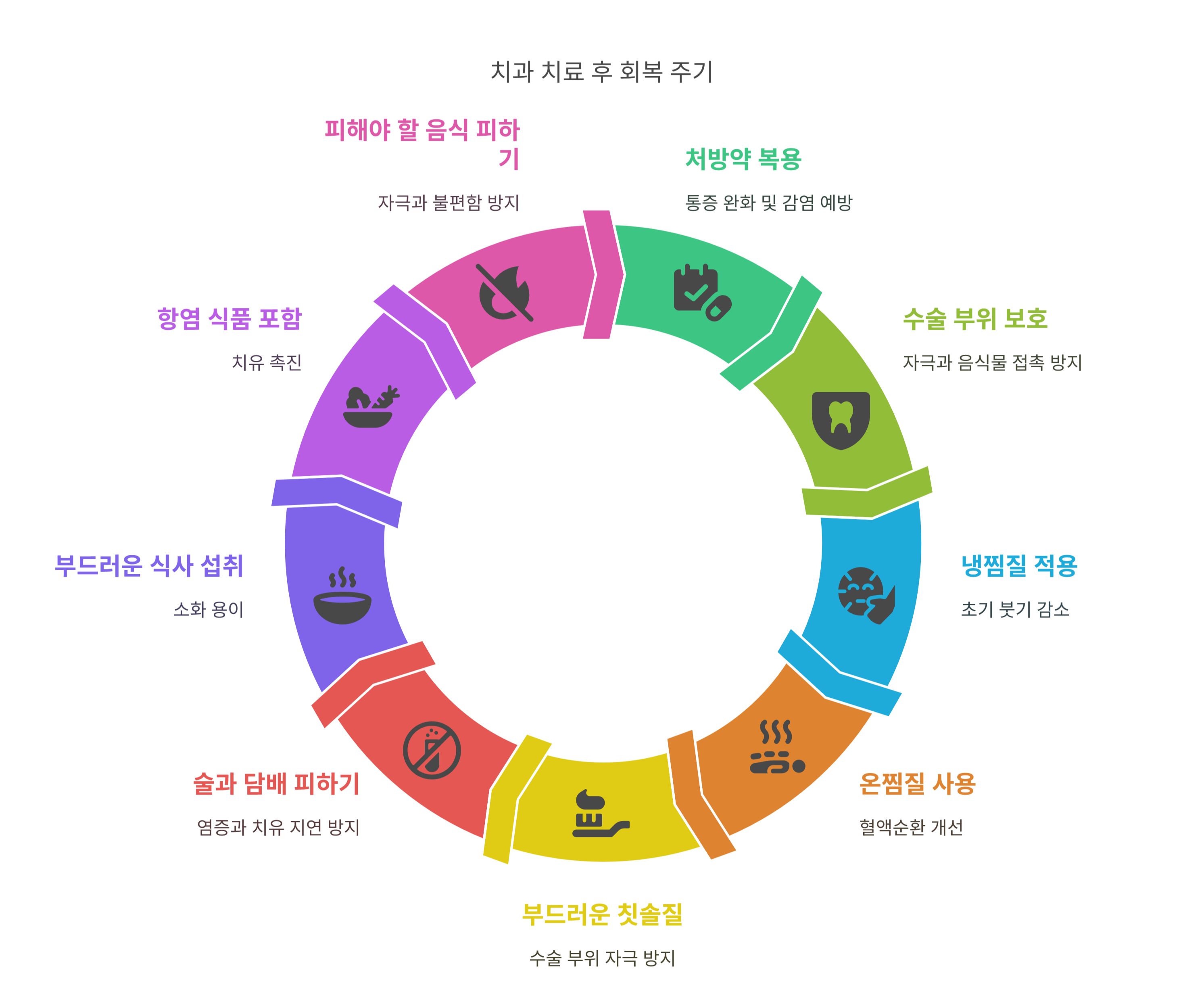 치료만큼 중요한 것이 회복기 관리! 올바른 식사와 생활습관으로 건강한 치아를 지켜주세요.