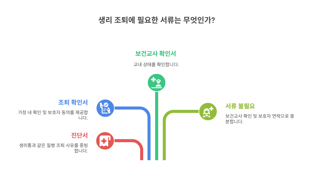 생리 조퇴 시, 학교에서 단순히 말로만 사유를 인정해주는 경우도 있지만 특정 상황에선 서류 제출이 요구될 수 있어요.