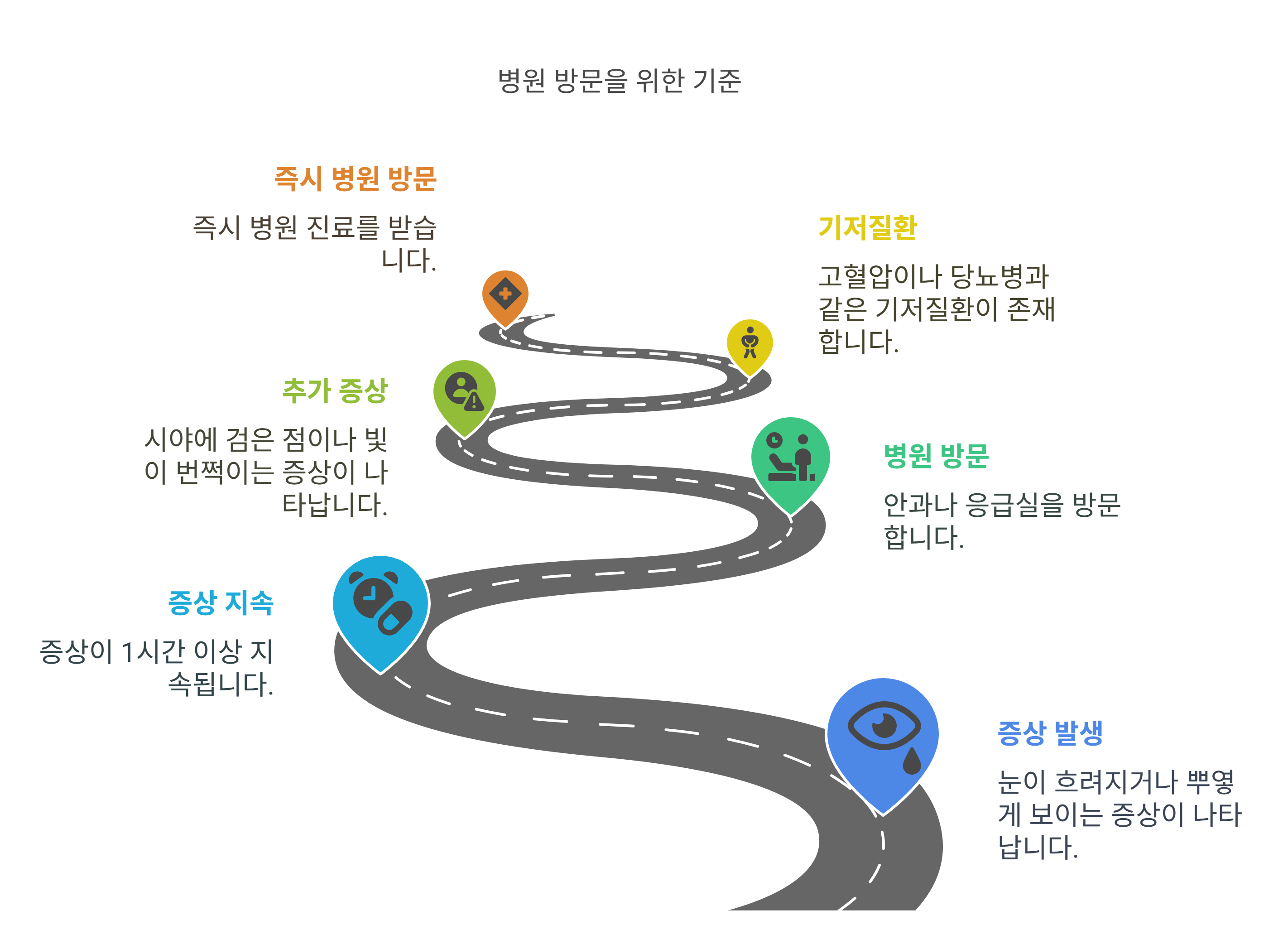 ⚠️ 주의: 갑작스럽고 심각한 시력 변화는 무시하지 말고, 즉시 병원에서 검사를 받아야 합니다.