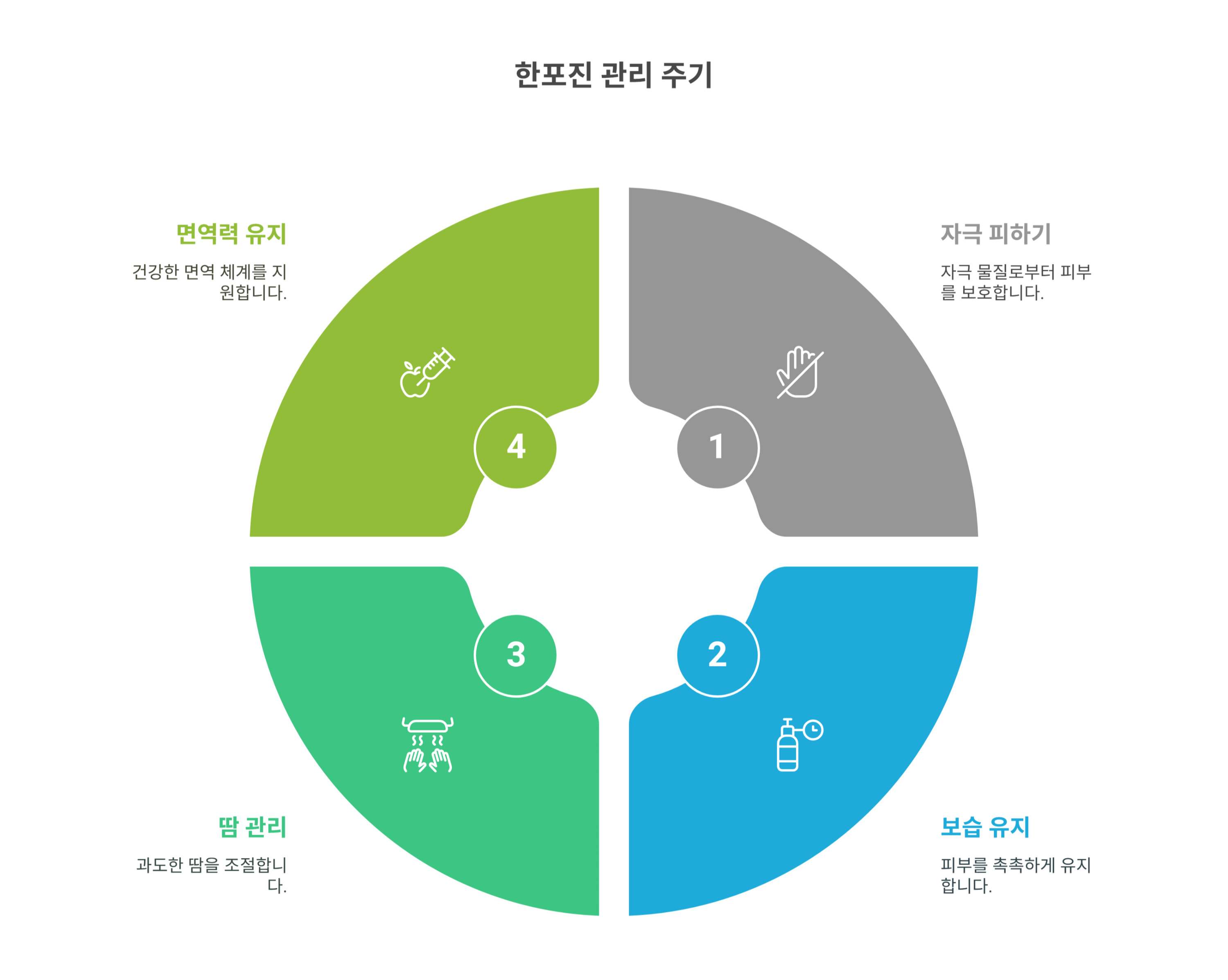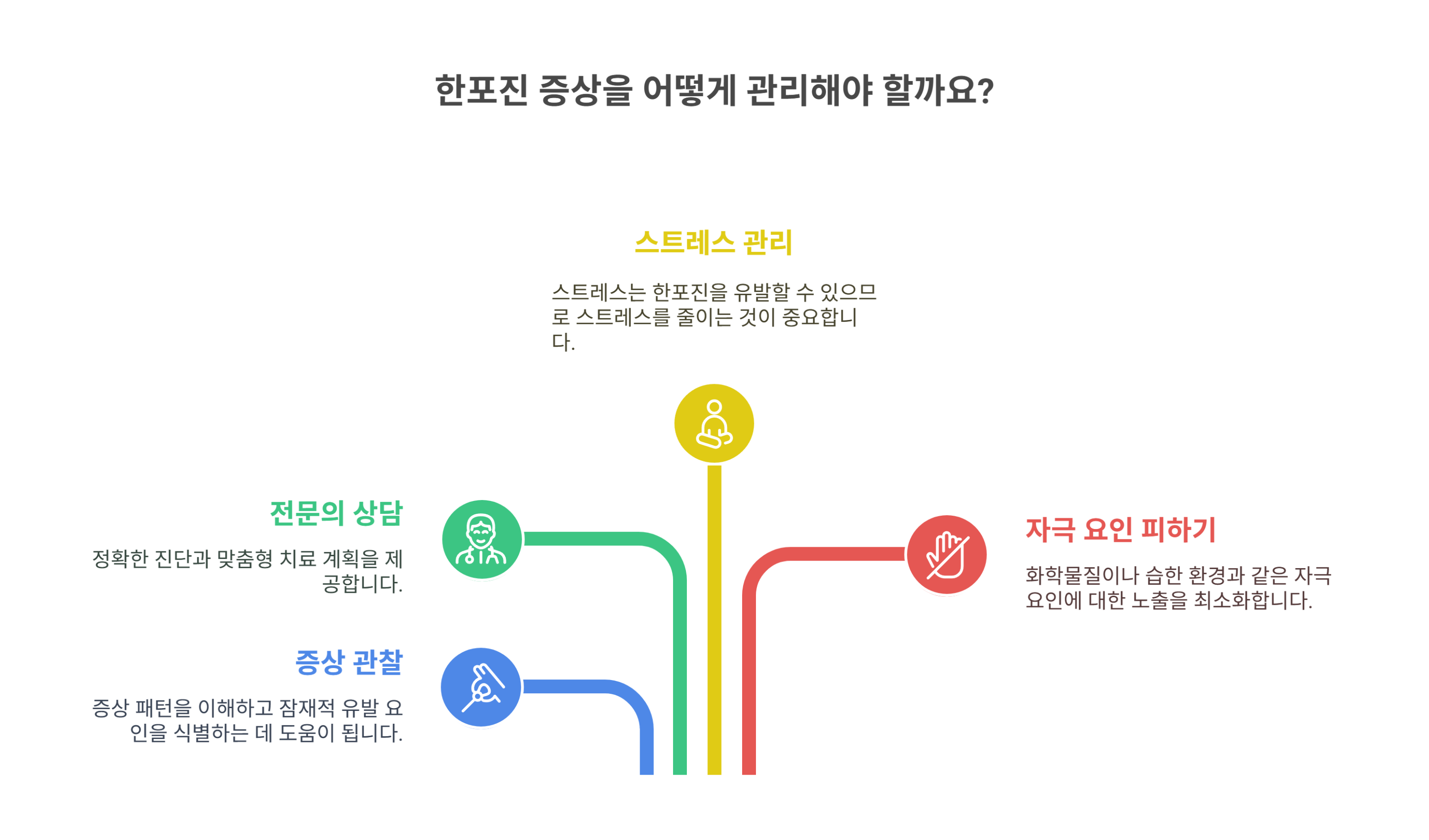 💡 TIP: 한포진은 접촉성 피부염이나 습진과 혼동되기 쉬우므로, 증상이 반복된다면 전문의 상담이 필요해요.