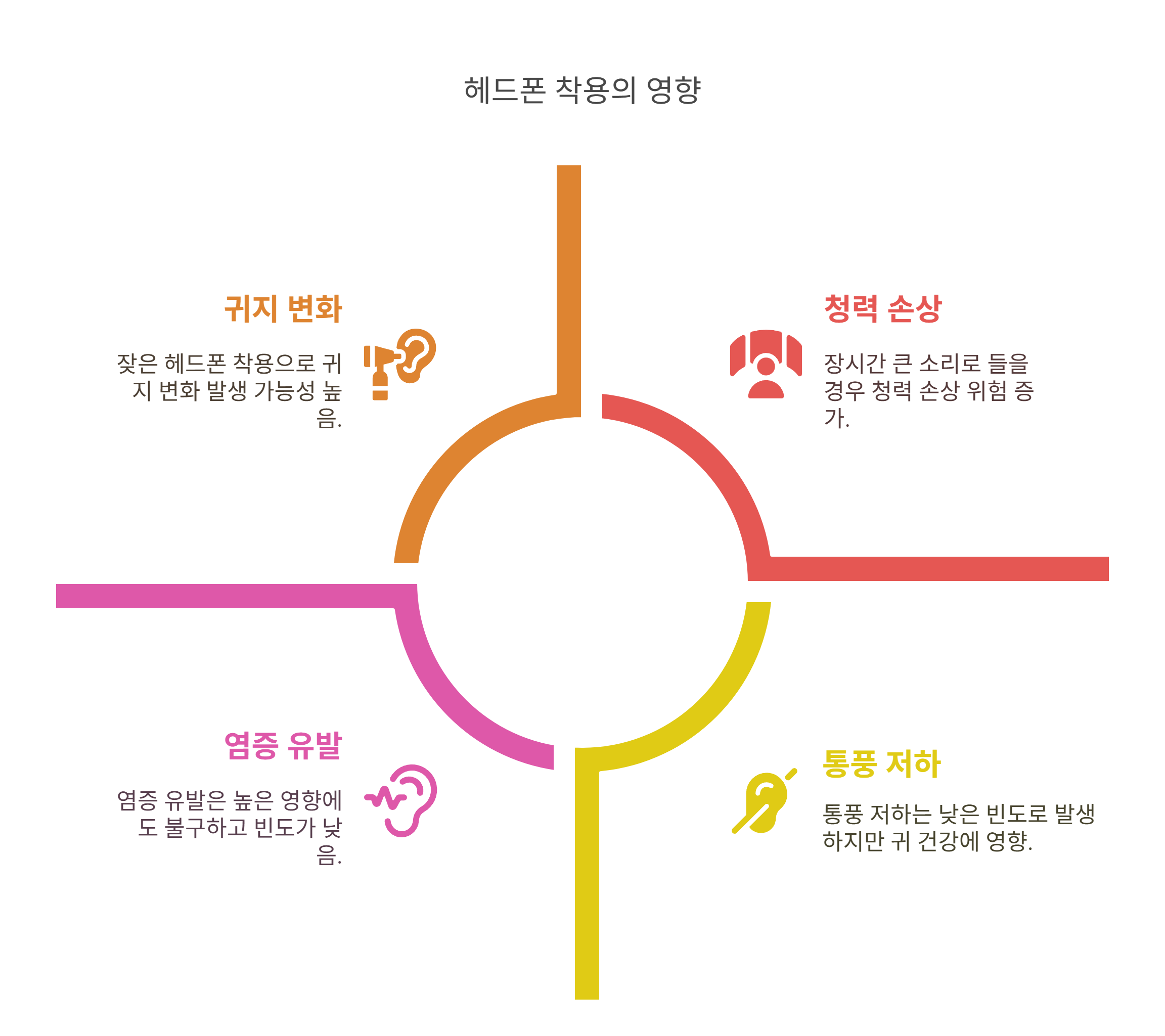 | 청력 손상 | 장시간 큰 소리로 들을 경우 고막에 무리 |