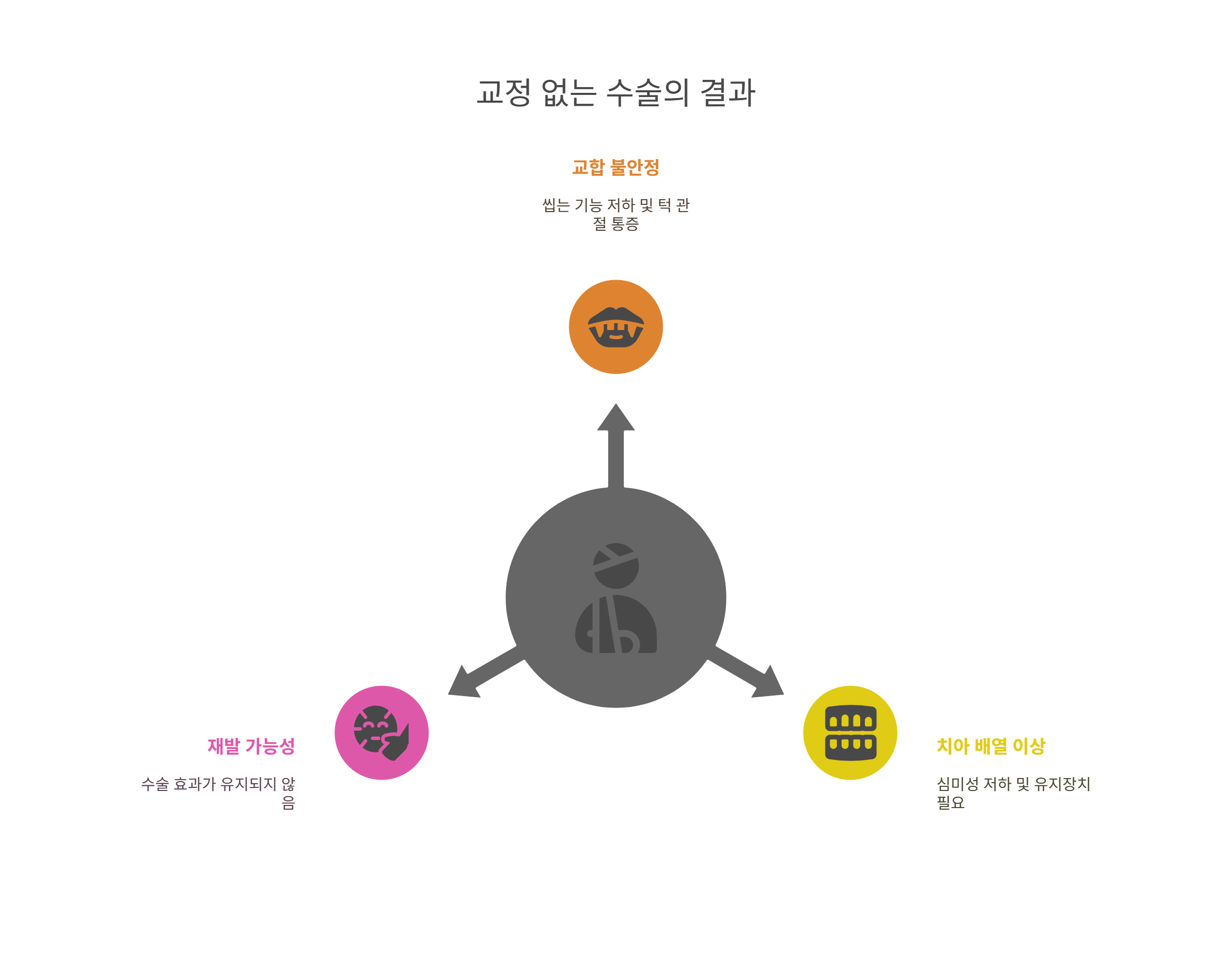 다음은, 교정 없이 수술만 한 경우 어떤 문제가 생기는지 알아볼게요! ⚠️