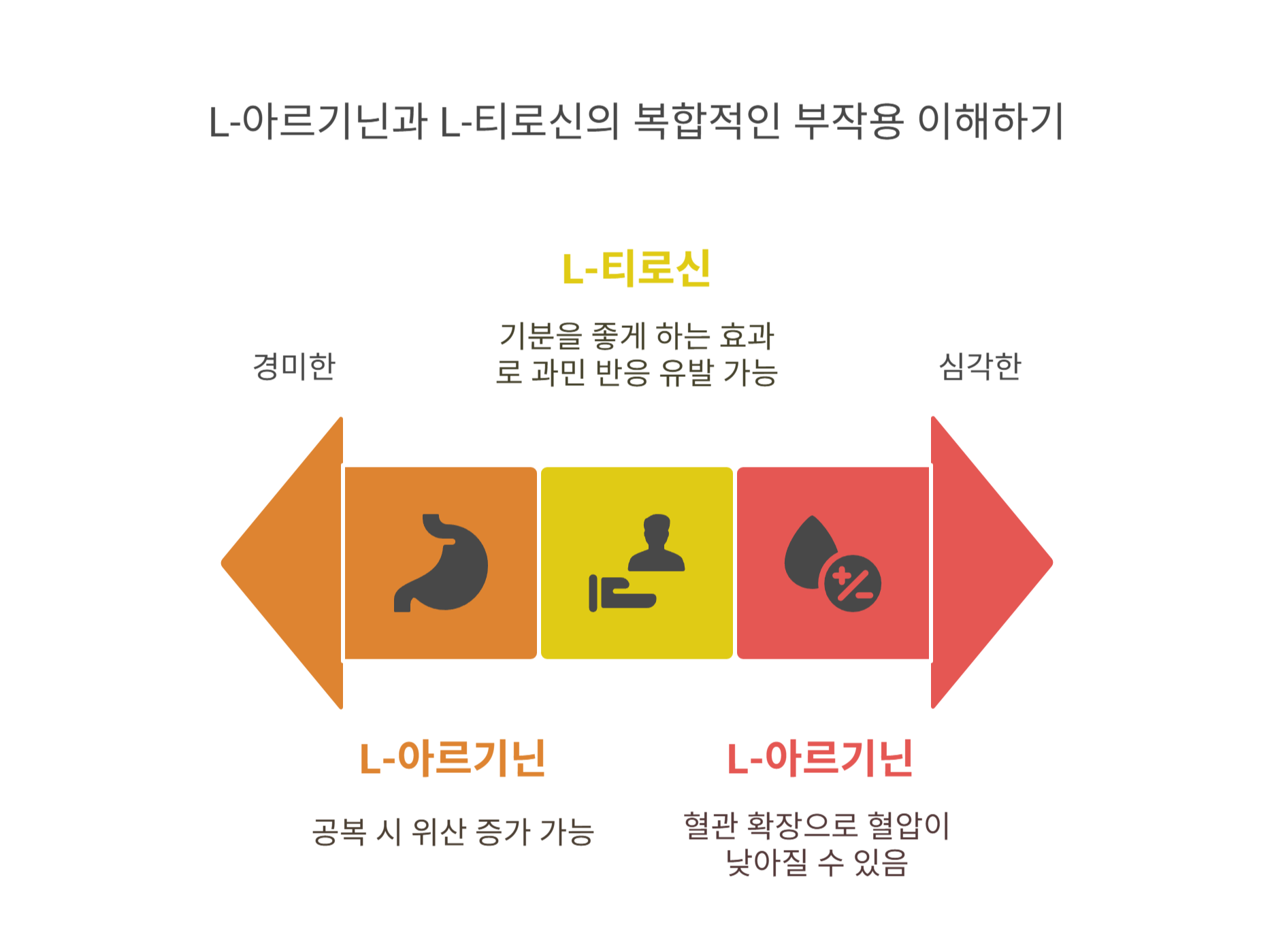 L-아르기닌과 L-티로신은 일반적으로 안전한 아미노산이지만, 체질이나 복용량에 따라 부작용이 발생할 수 있어요.